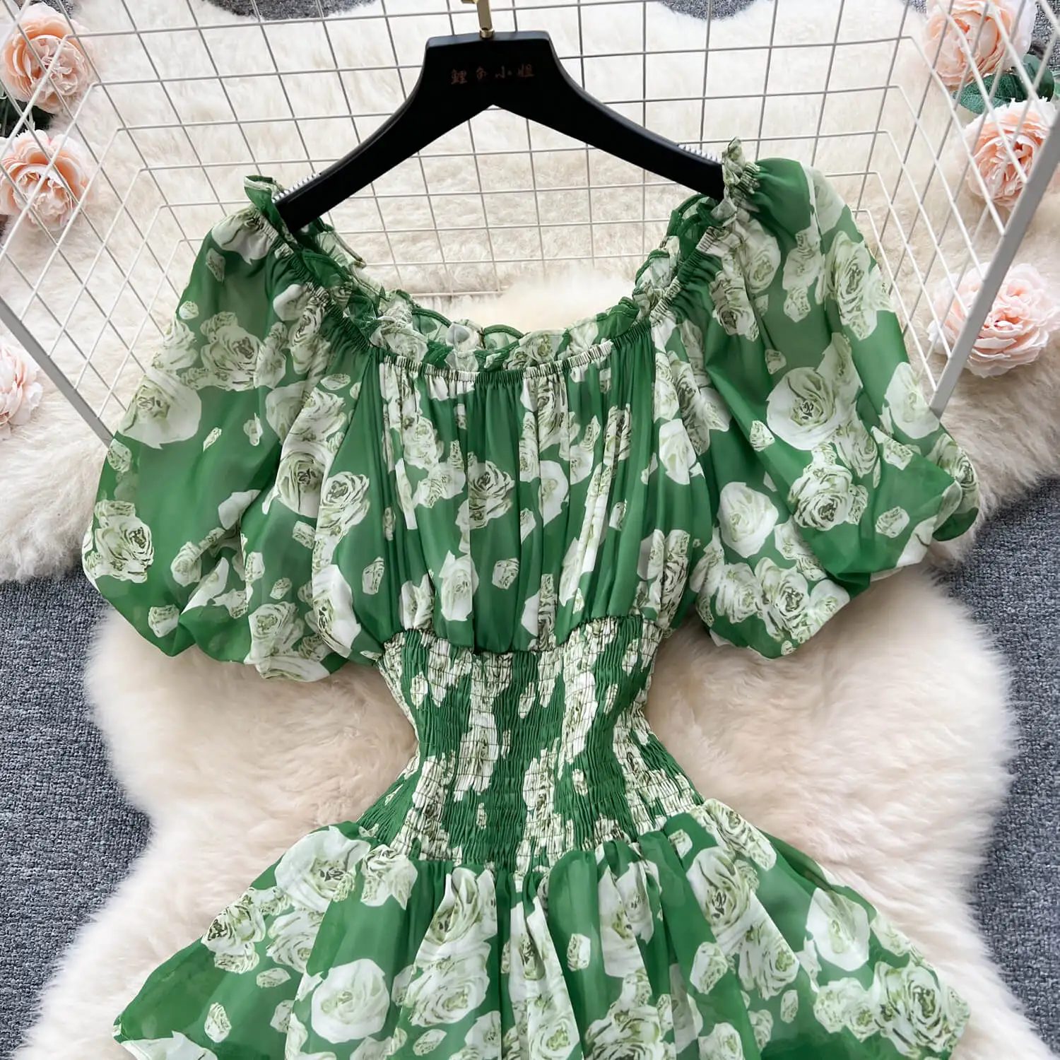 New Retro Romantic Sense Floral Dress Female Summer Bubble Sleeve Waist Design Niche Chic SeniorSsense Cake Dress
