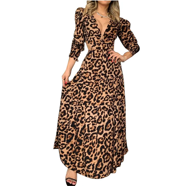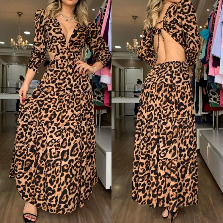 New Sexy Backless Long Dress Leopard Print Women's Dresses Elegant Plus Size Clothing