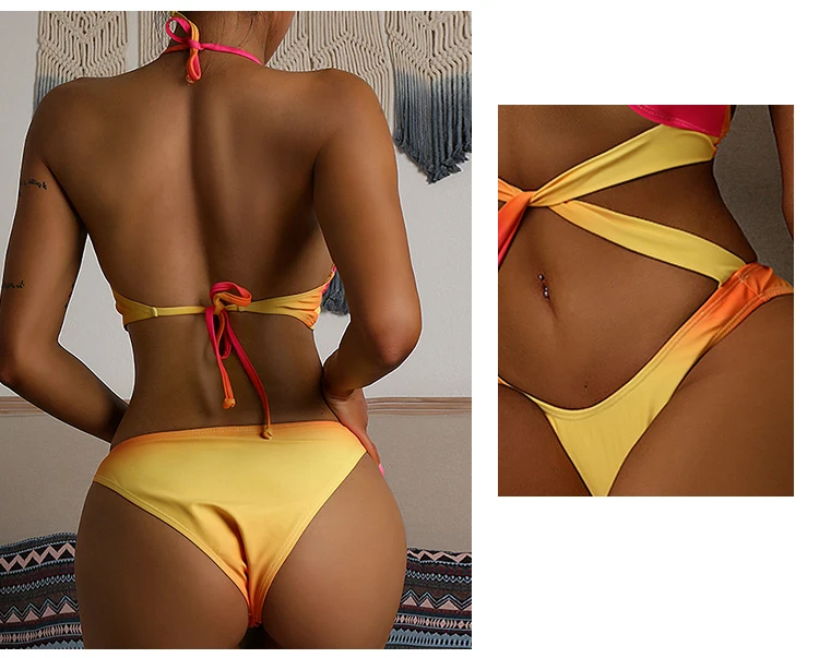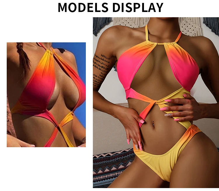 New Sexy Mature Women Hypercolor Gradient Backless One Piece Womens Padded Cut Out String Swimsuit