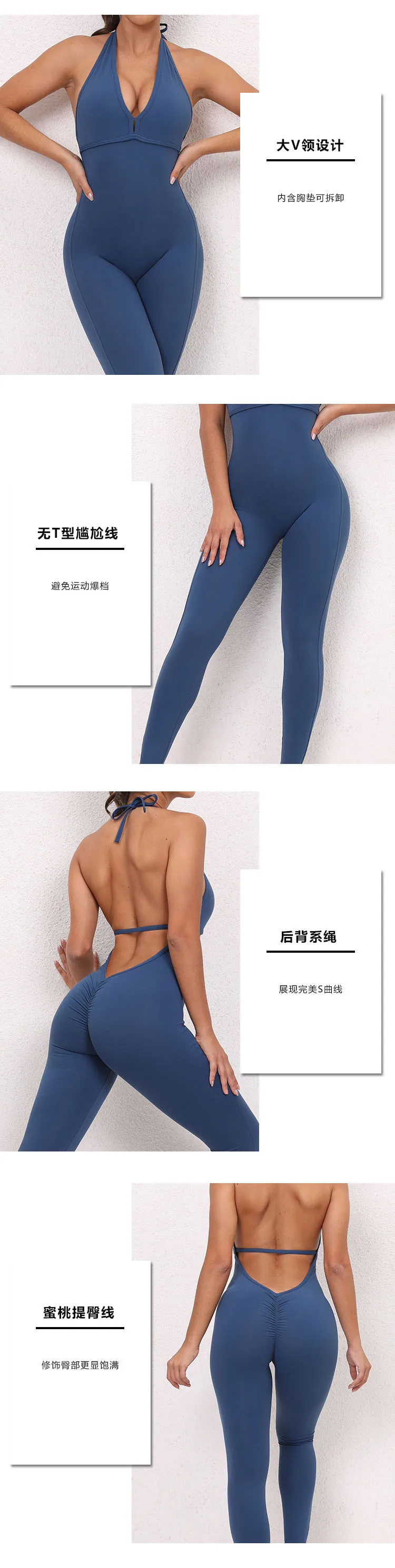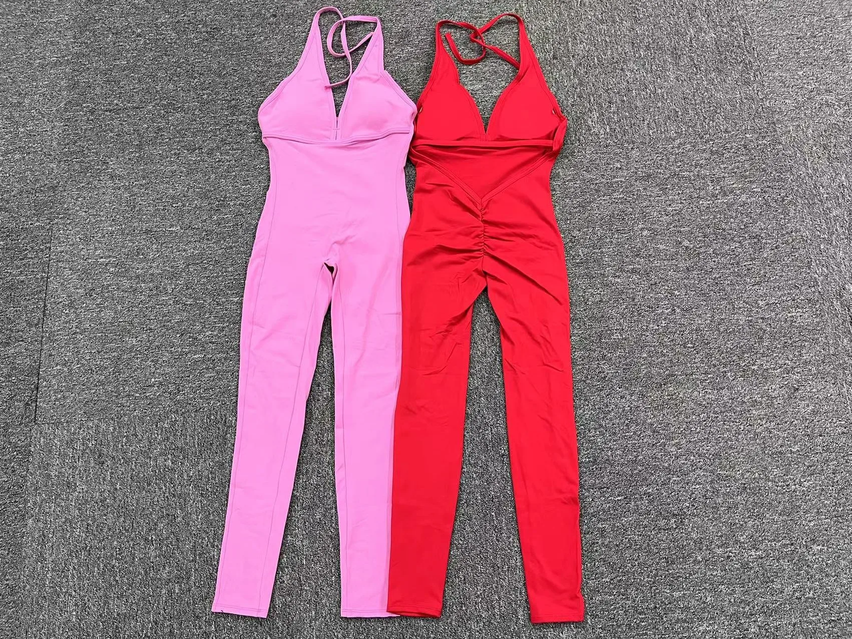 New Sexy Red V Back Design Active Romper Fitness Workout Scrunch Yoga Jumpsuit Sportswear Bodysuits for Women