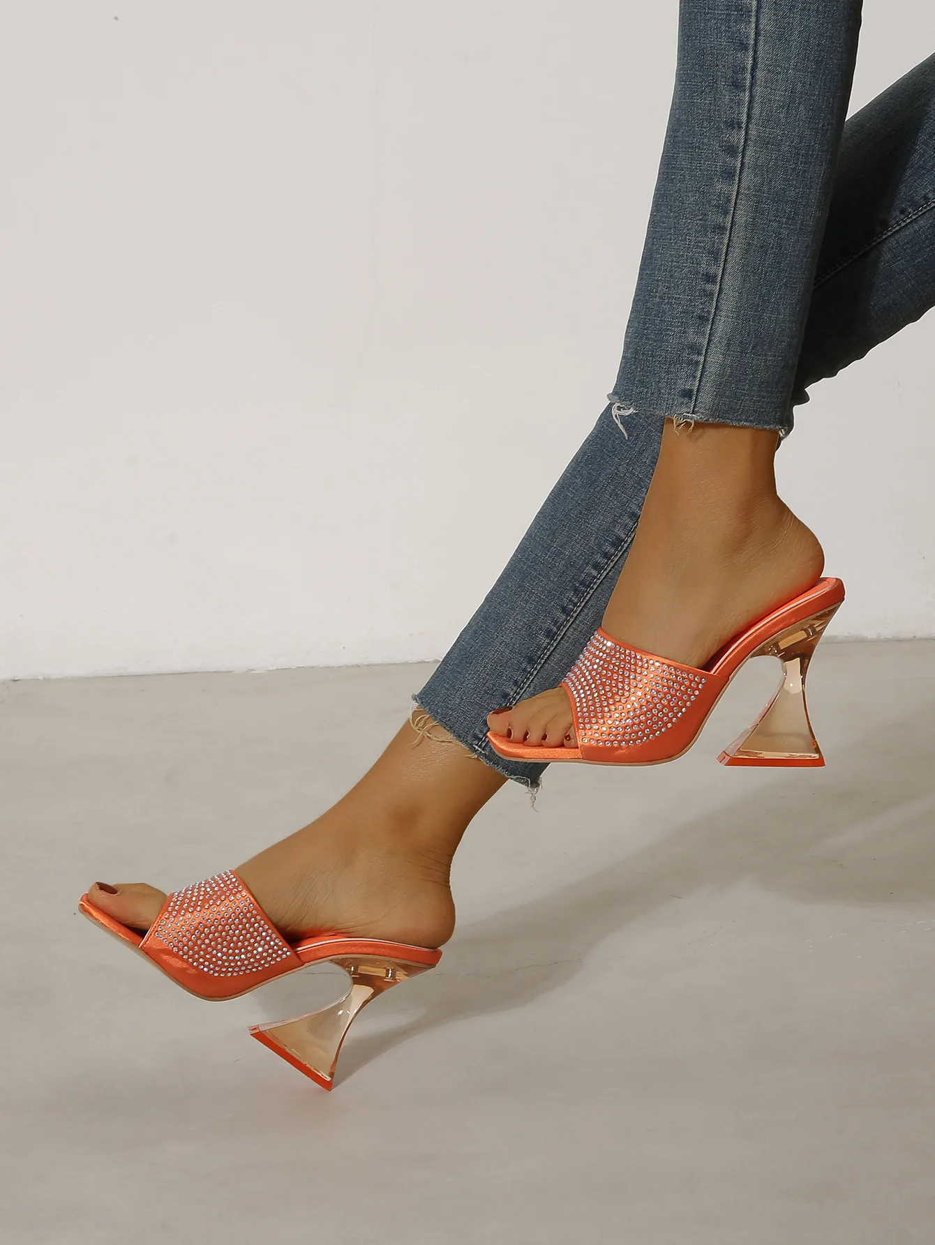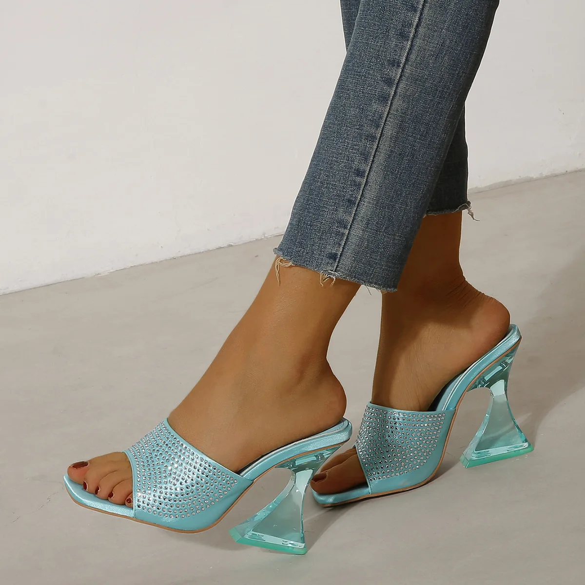 New Sexy Transparent Thick Heel Rhinestone High Heel Sandals Open Toe Casual Wedding Party women's Sandals and Slippers