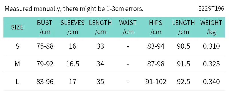 Note: Please compare your body measurements with our size chart before order! 1: 1inch=2.54CM, 1CM=0.39inch,Take below Size Conversion Chart as reference. 2: All the size is provided for your reference, 1-3cm error should be accepted.