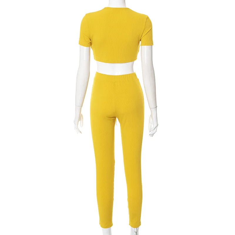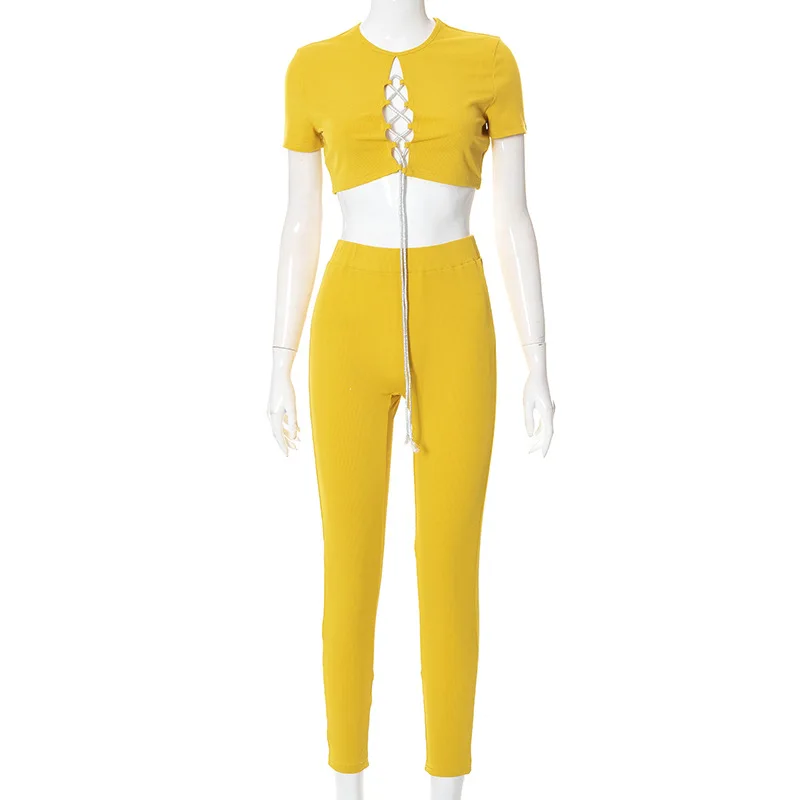 New solid color cardigan String T-shirt high waist tight trouser set for summer 2022