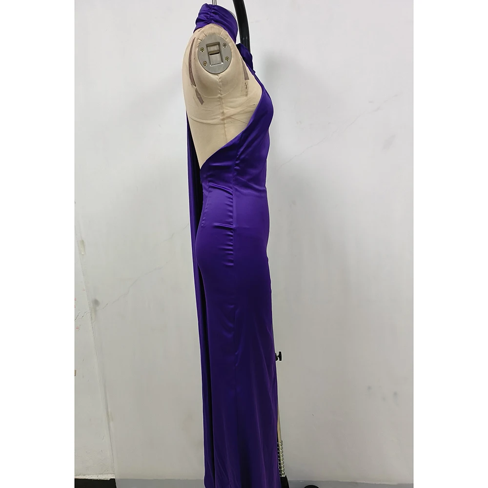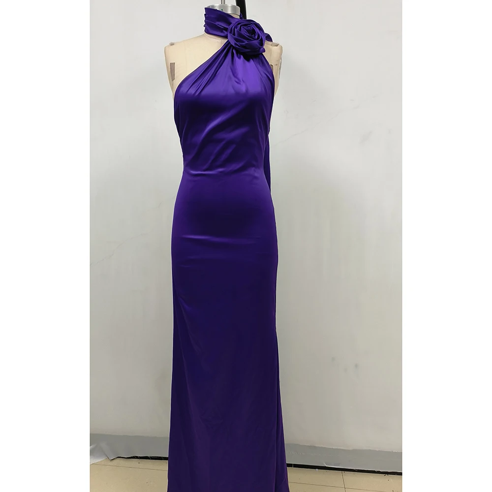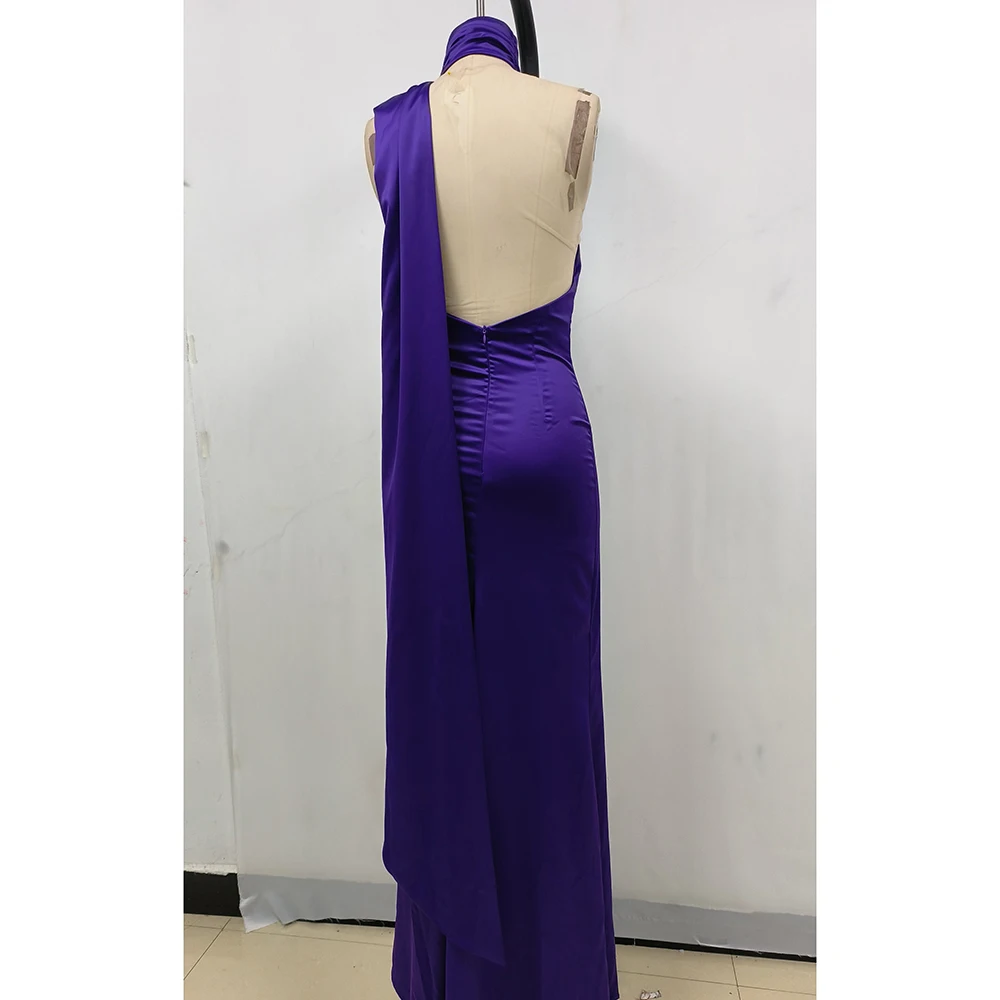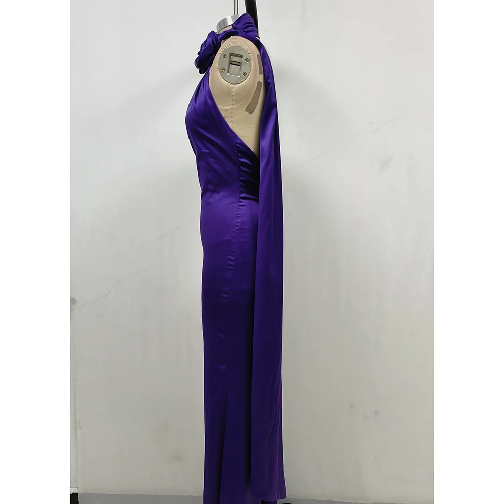 New Spring And Summer Women's Floor-Length Dress High-Waisted Commuter Charm Purple Halter Luxury Evening Party Dress
