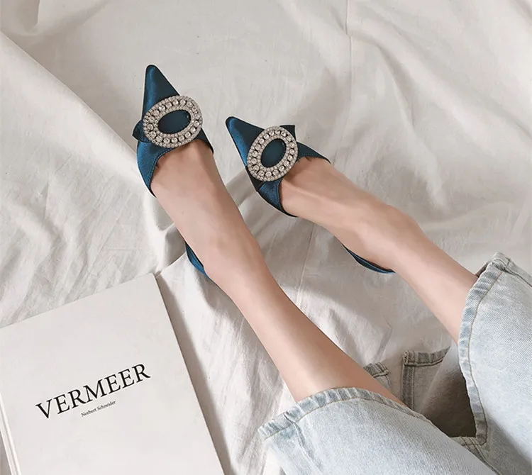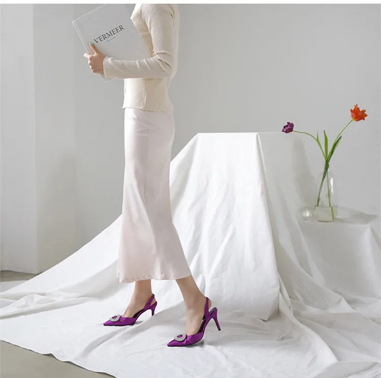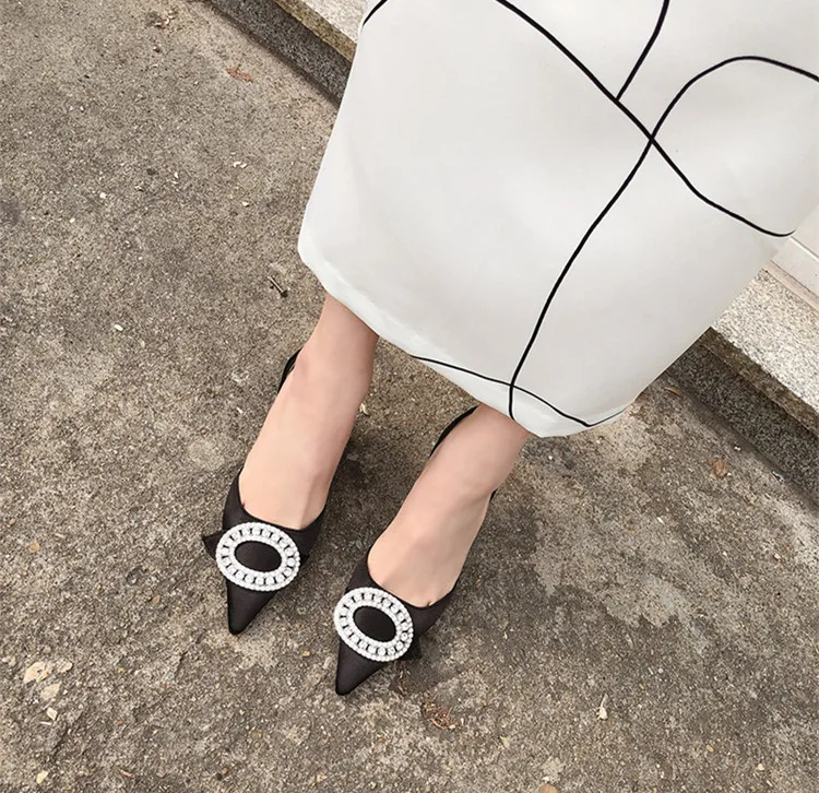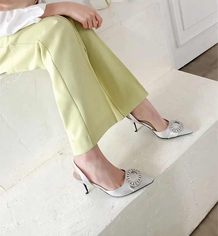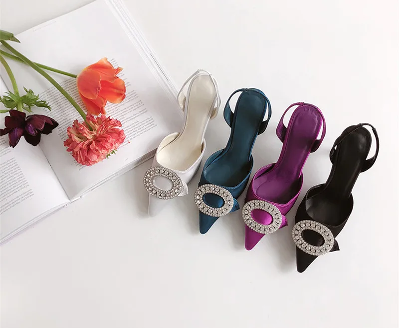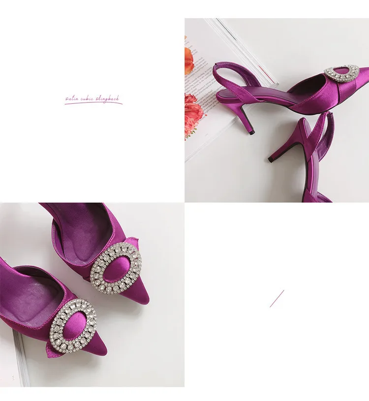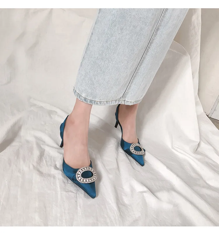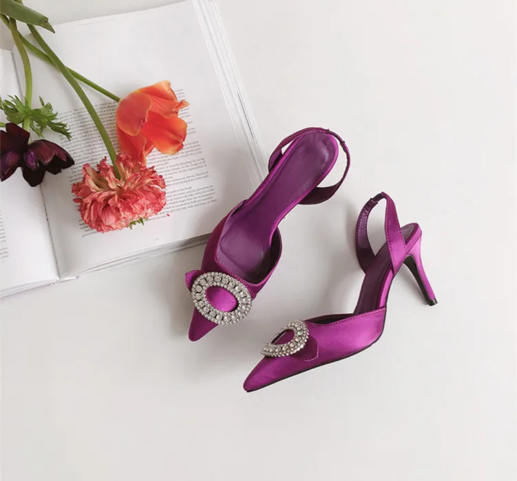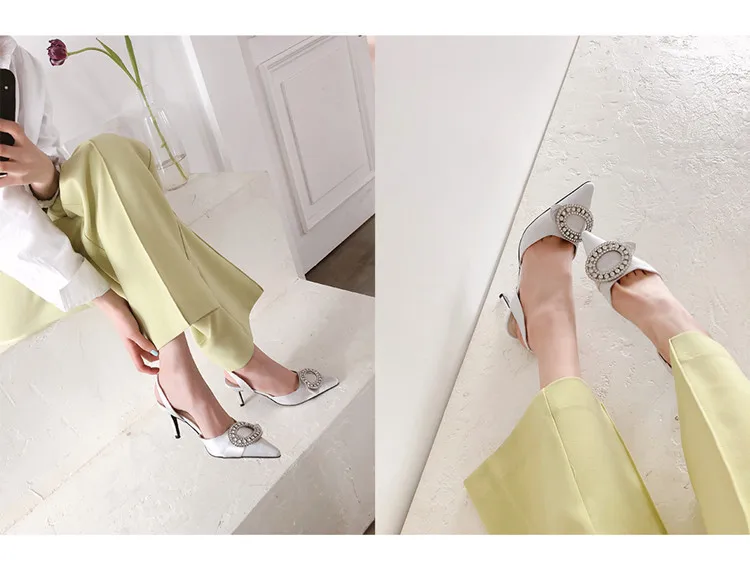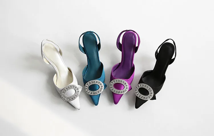 New Spring Autumn Female High Heels Stilettos Point Toe Shallow Buckle Women Sandals Outside Banquet Ladies Dress Shoes