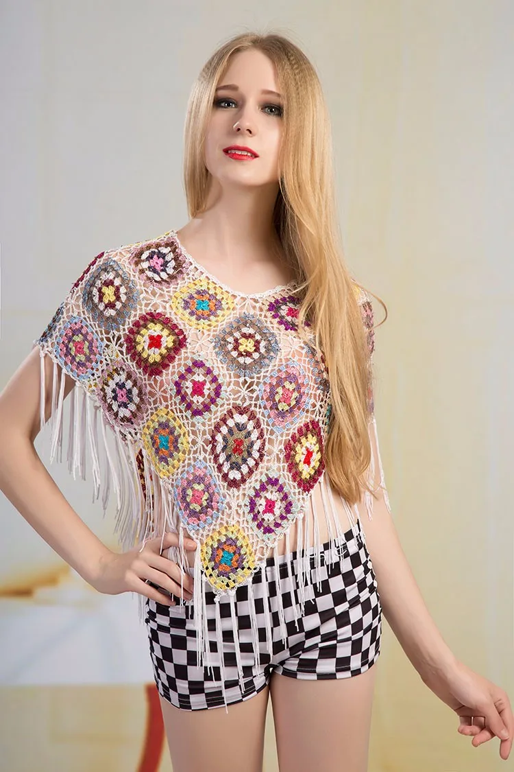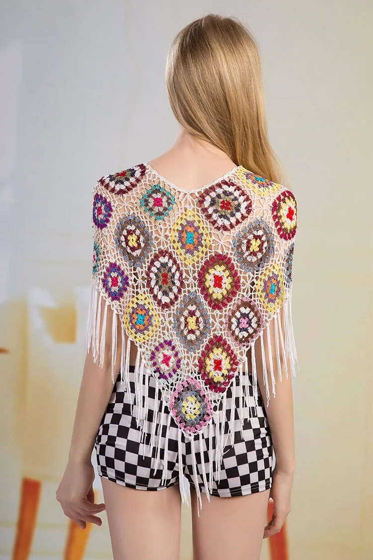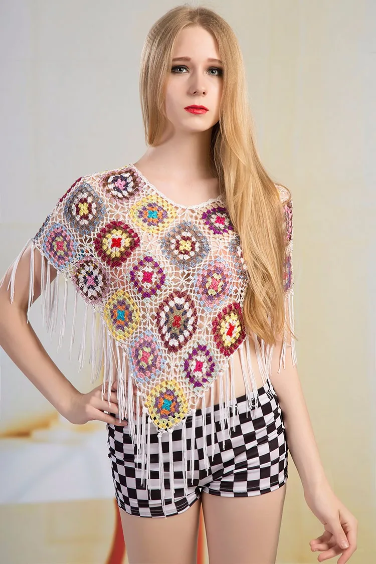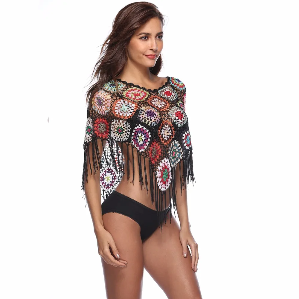 New Spring Floral Handmade Crochet Tassel Sexy Bikini Cover up Swimwear Blouses