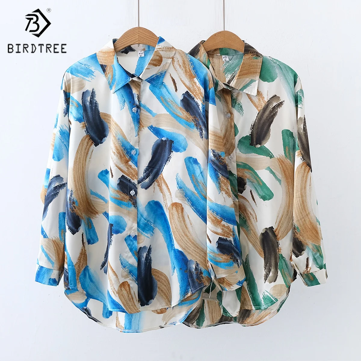 New Spring Women's Oversize Chiffon Shirts Spring Tropical Printing Tops Workwear Loose Casual Shirt Autumn Wholesale T33404X