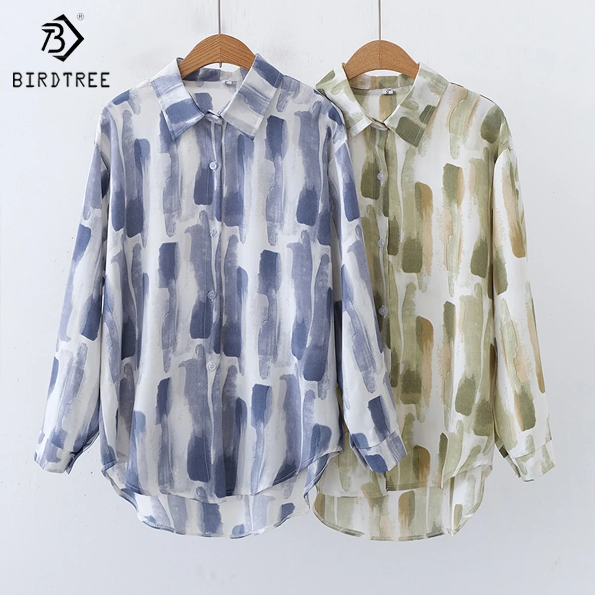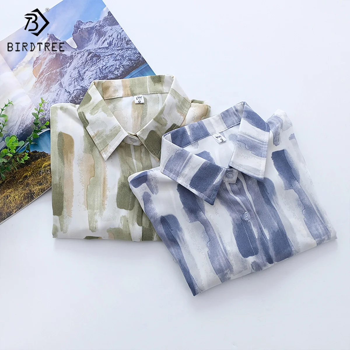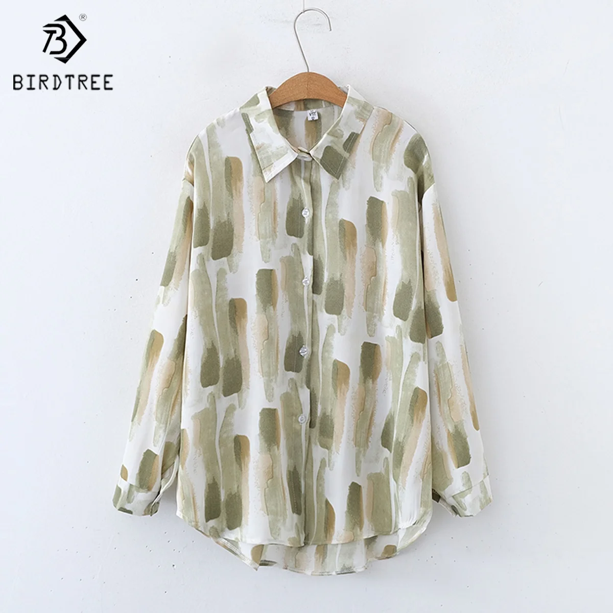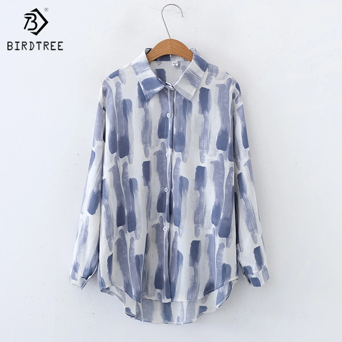 New Spring Women's Oversize Chiffon Shirts Spring Tropical Printing Tops Workwear Loose Casual Shirt Autumn Wholesale T33411X