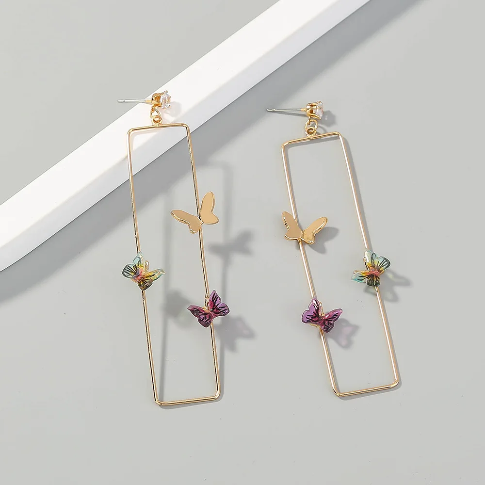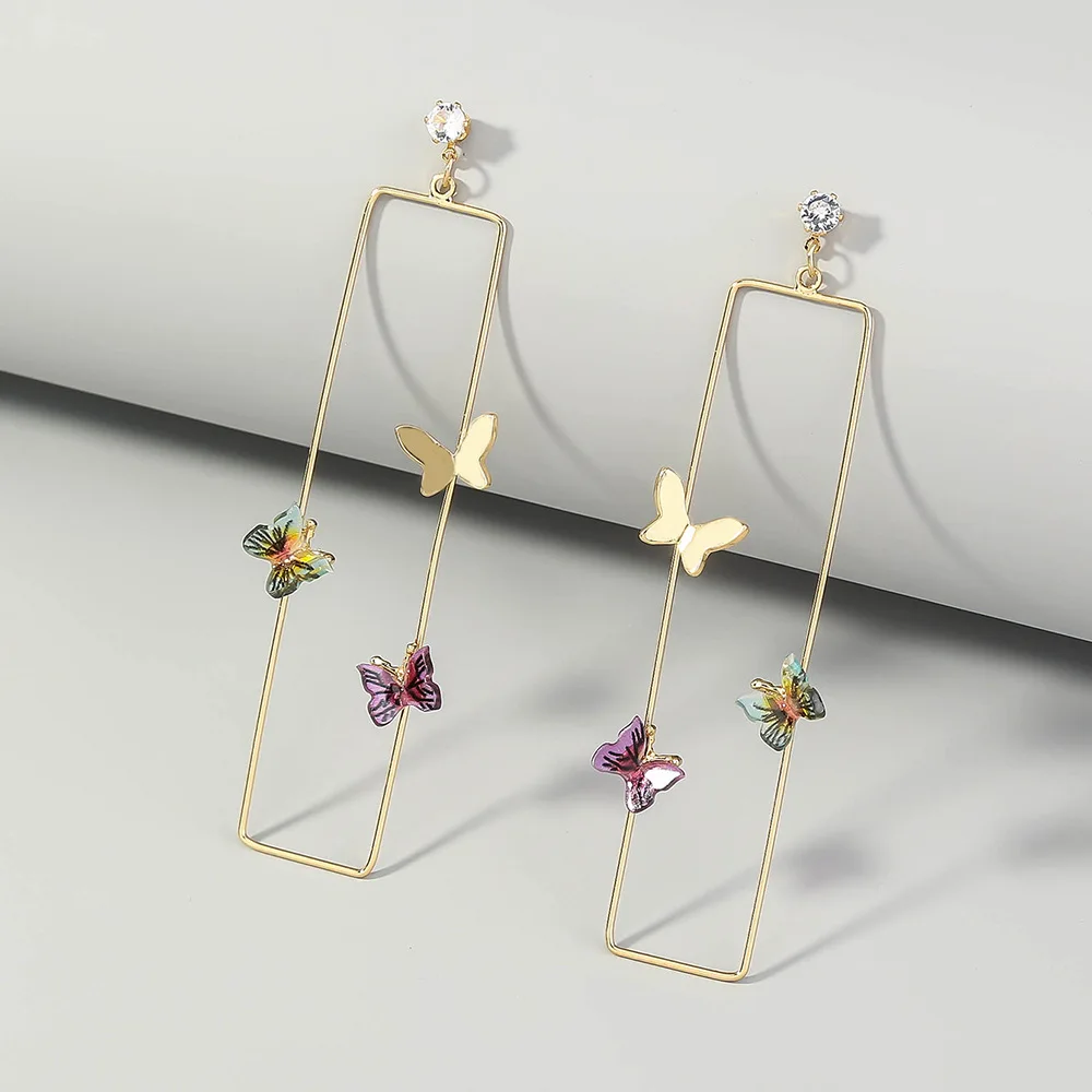 New statement Geometric Shape Multicolor butterfly earrings diamond gold plated Aretes Drop Earrings fashion jewelry