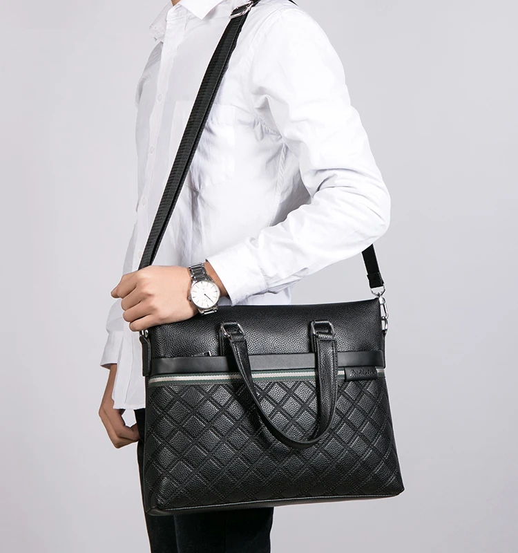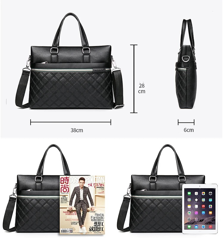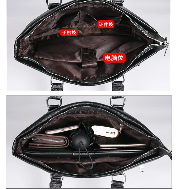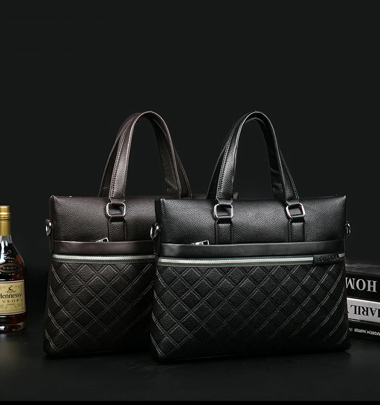 New style men's handbag PU leather business briefcase youth large-capacity zipper computer bag shoulder messenger men's bag