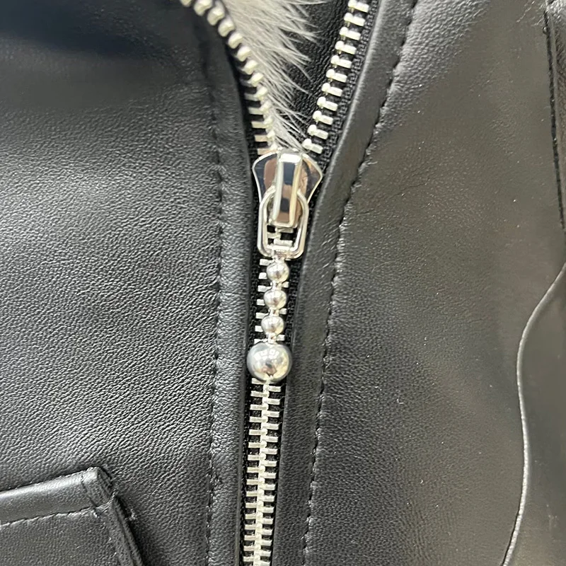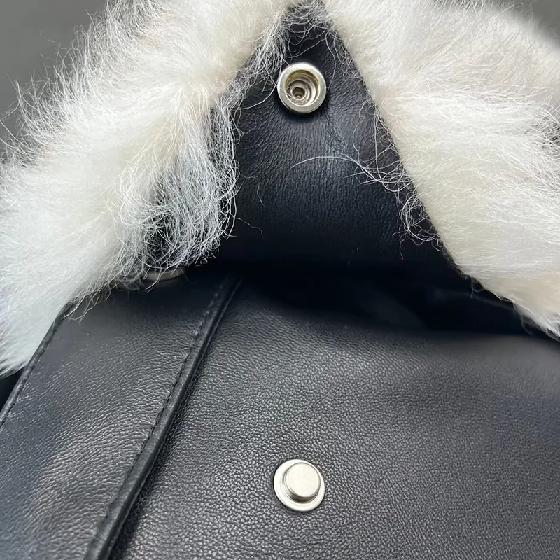 New Style Soft Tuscan Wool Collar Leather Coat Genuine Sheep Leather Jacket for Women