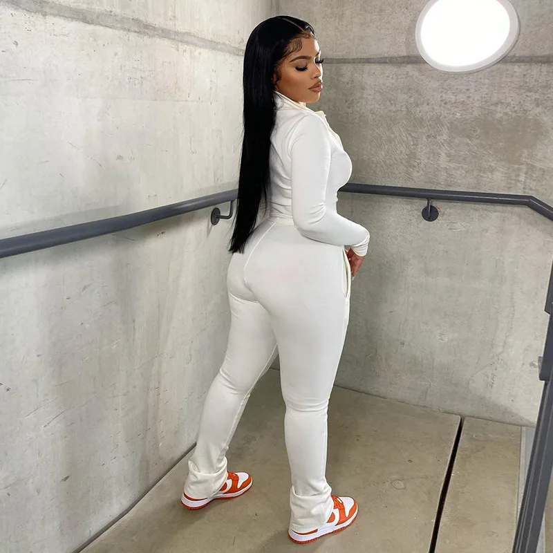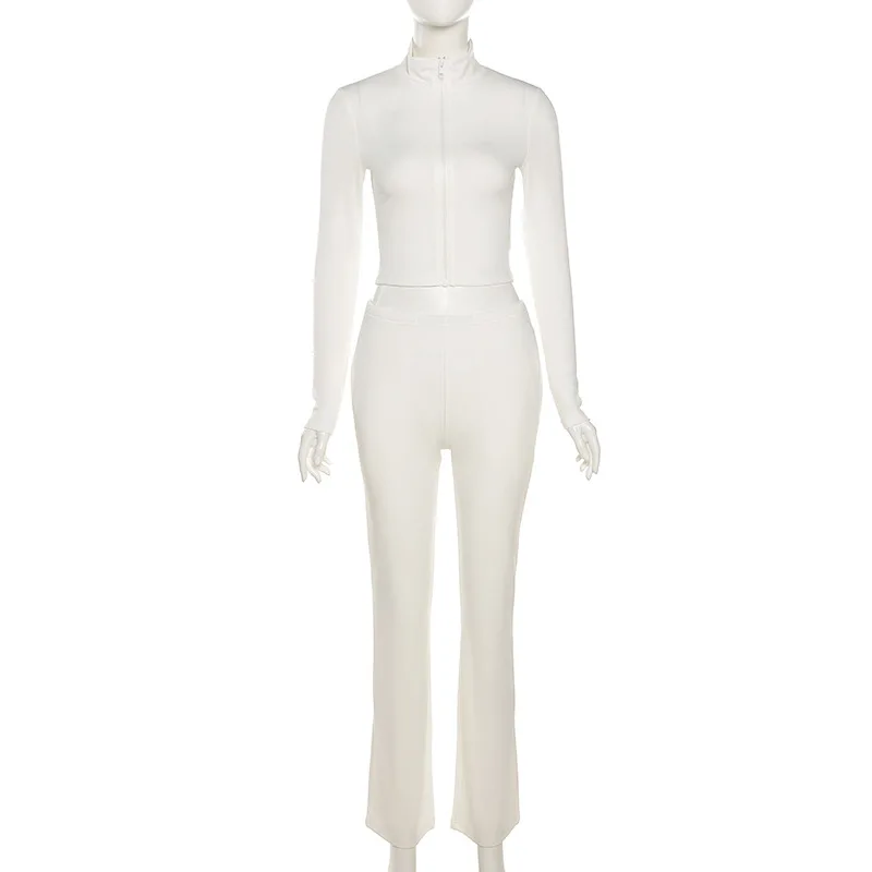 New Style Women Solid Color Casual Front Zipper Full Long Sleeve Tops Sporty Jogger Pants Outfits Two Piece Pants Set Women