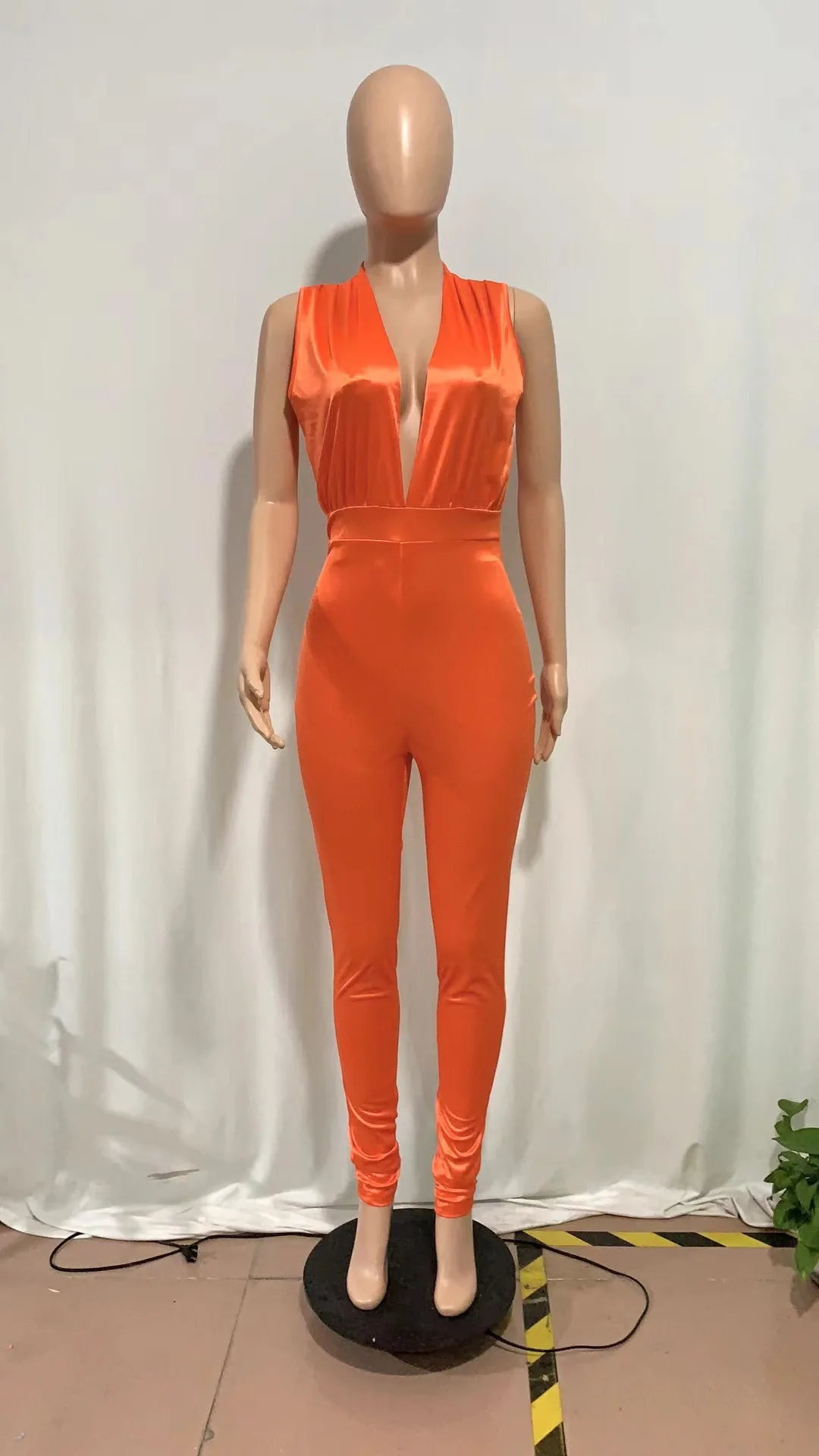 New Summer 2023 women jumpsuit deep v-neck high waist sleeveless sexy jumpsuit for women solid color elegant women clothing