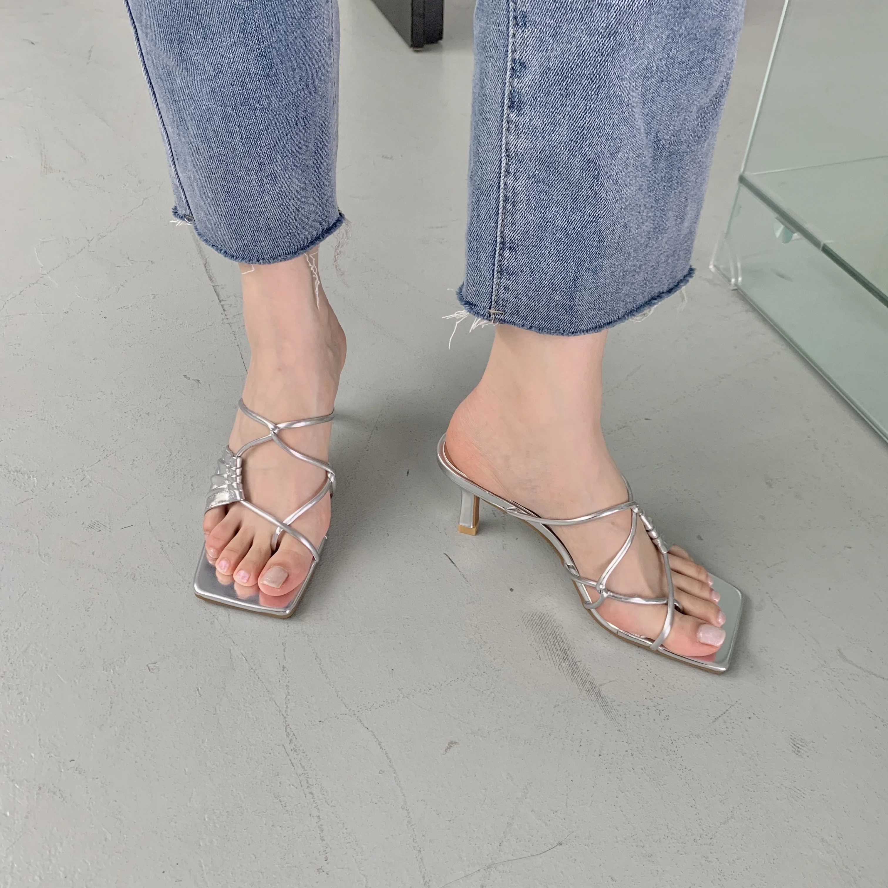 Heel height: 7CM Front desk height: 0.5CM Color: Black white gold silver