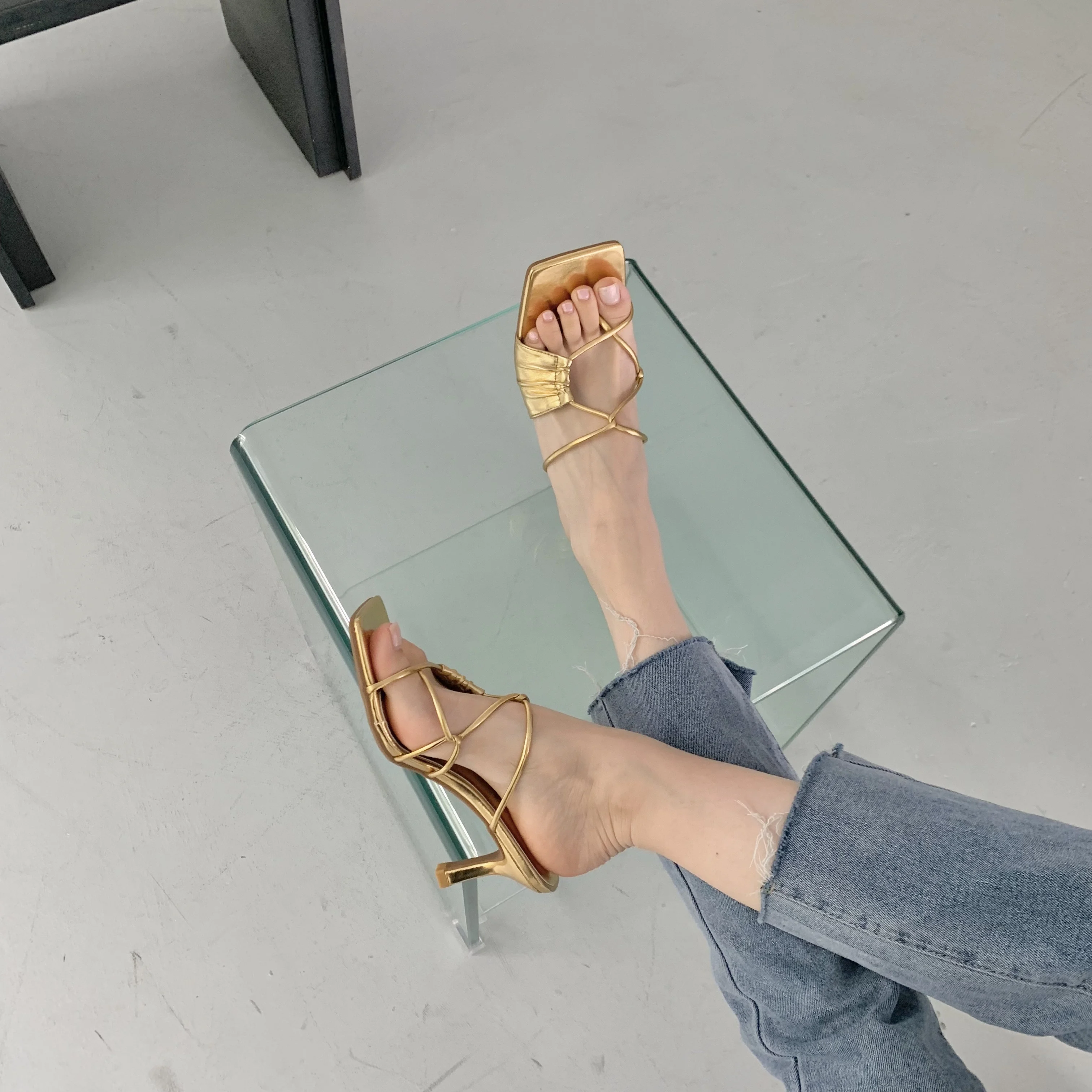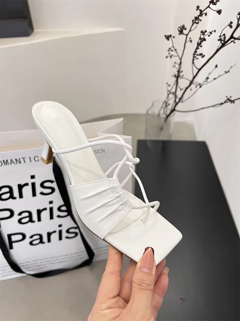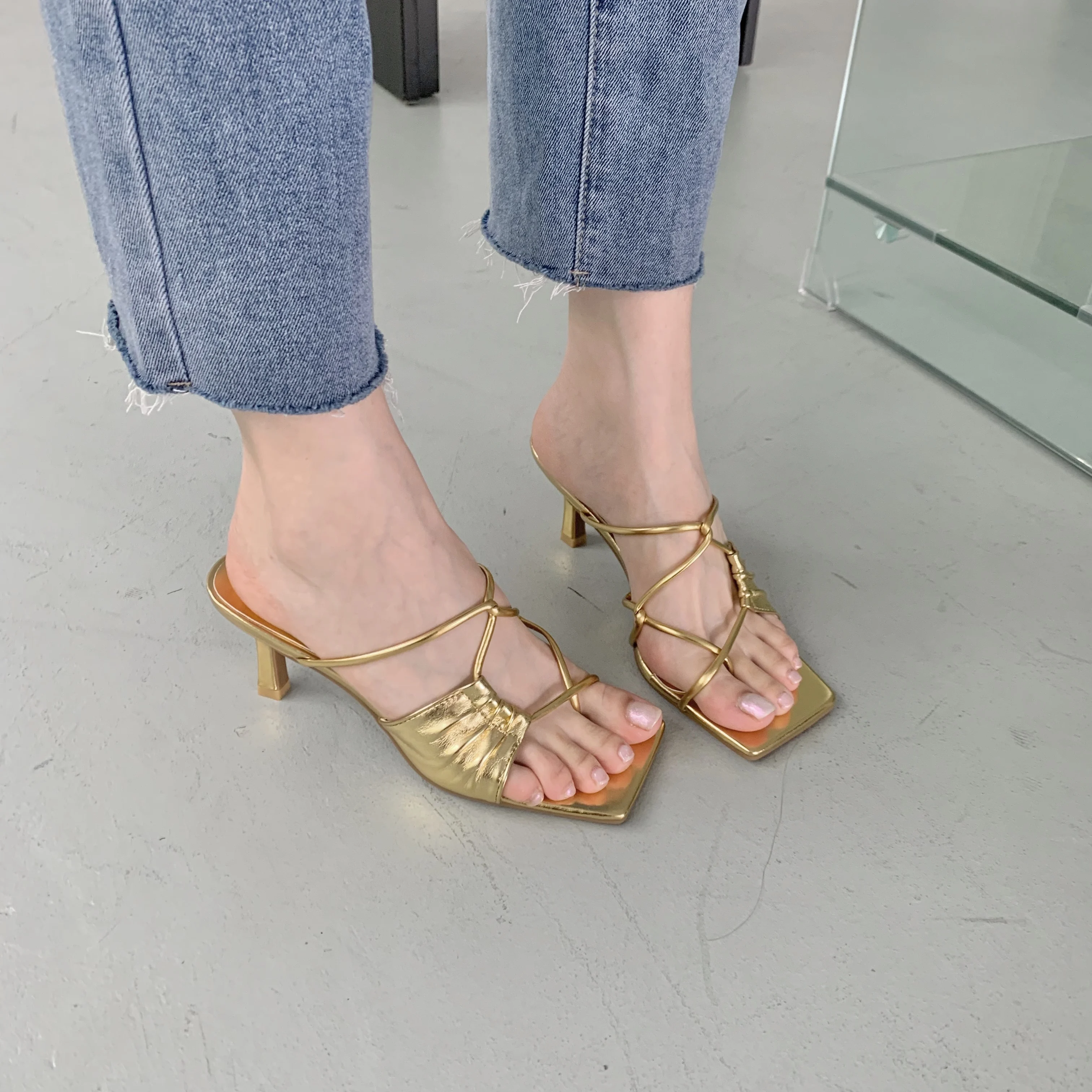 New Summer Gold Slippers Women High Heels Slide Female Clip Toe Sandal Party Dress Shoes Vacation Flip Flops Sandalia Mujer