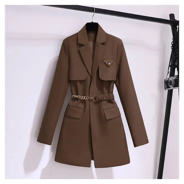 New Top Korean Style Chic Coffee Suit Coat Women's Spring and Autumn Suit High end Office Ladies Elegant Solid Jacket