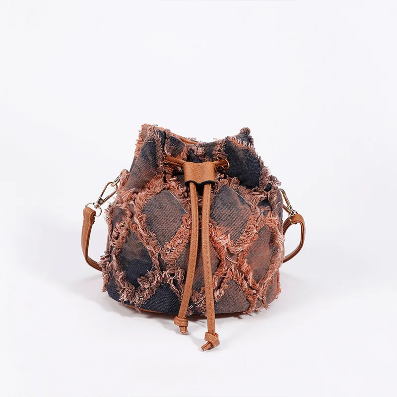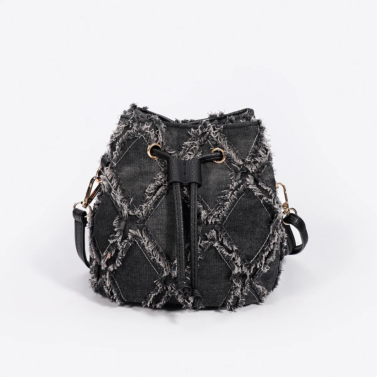New Trendy Autumn Lattice Bucket Bag Easy-matching Fashionable Casual Clutches PU Bucket Purse For Woman Handbag