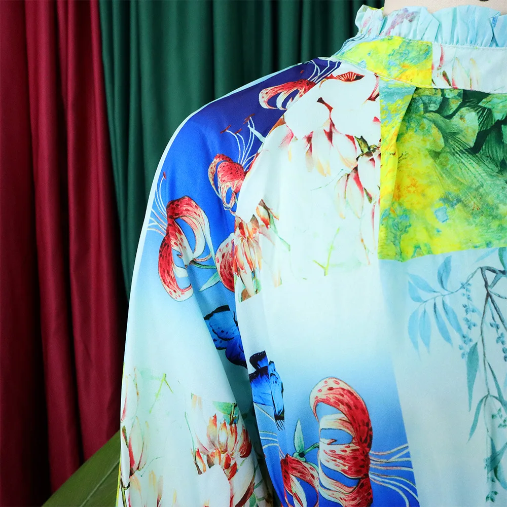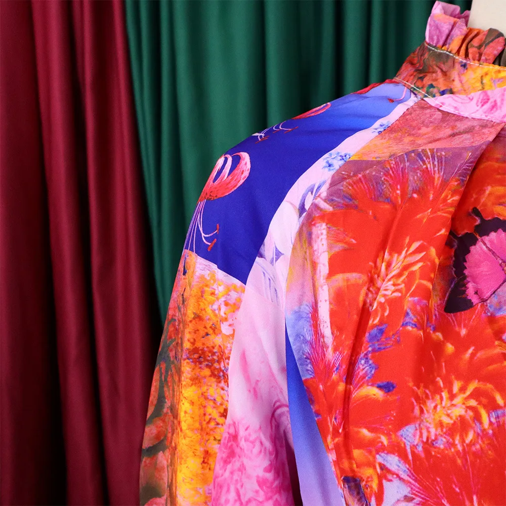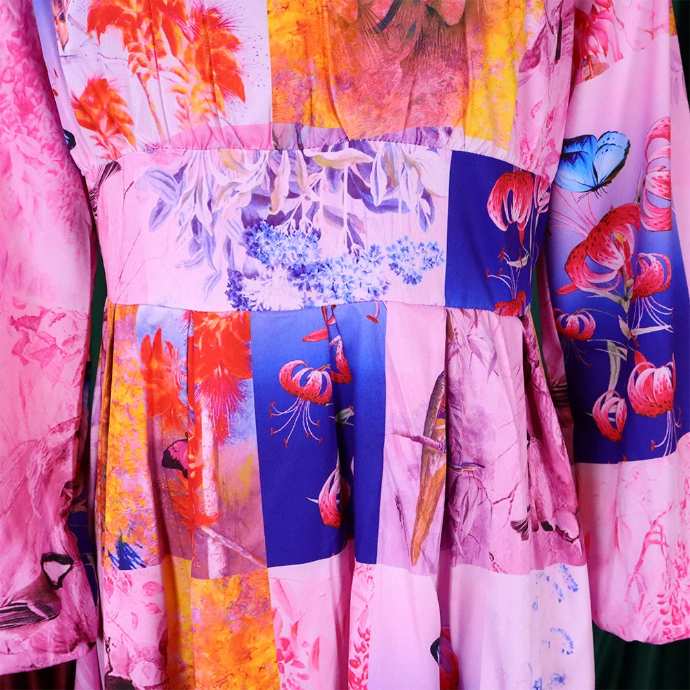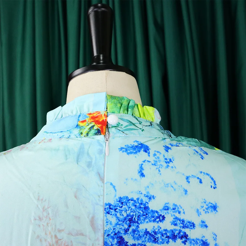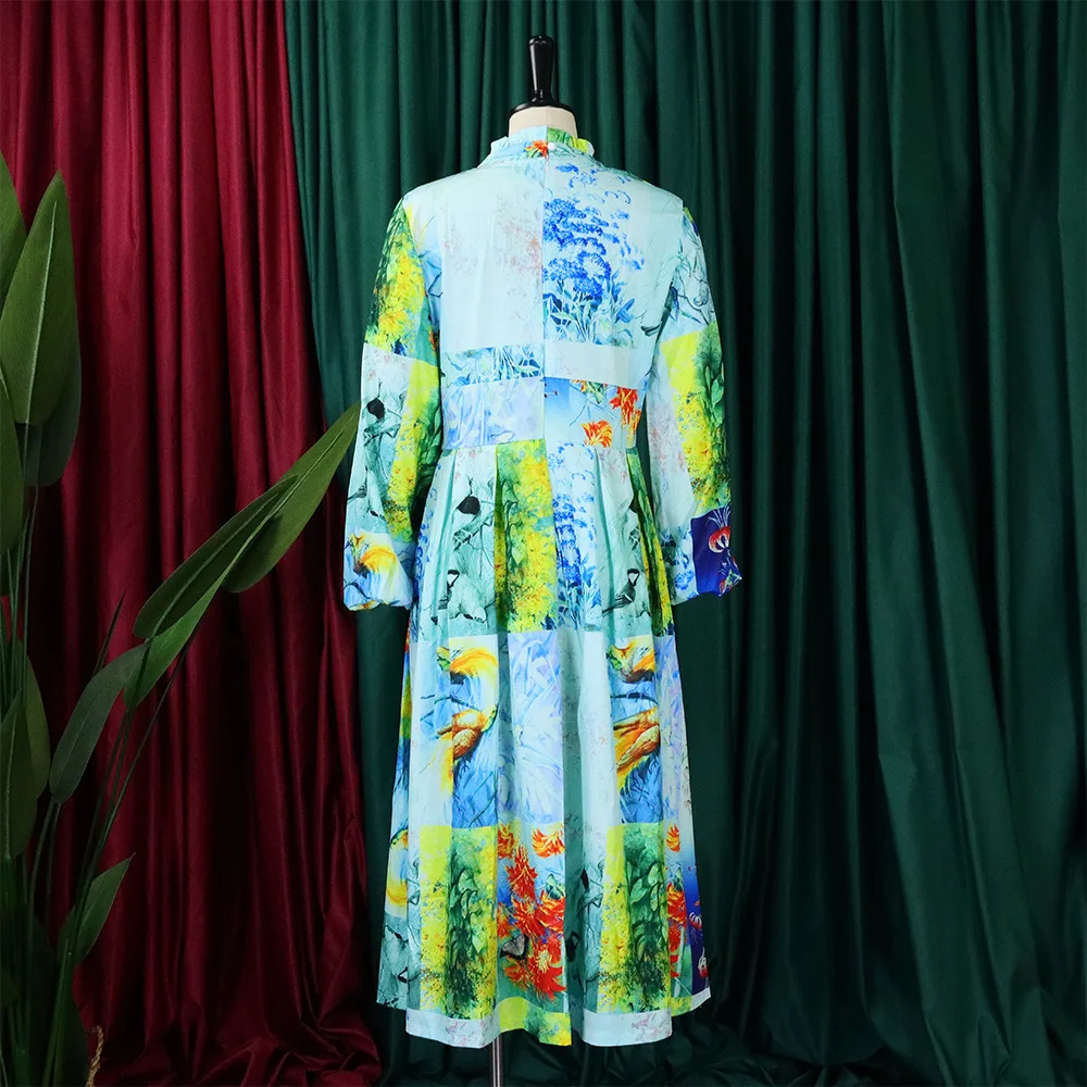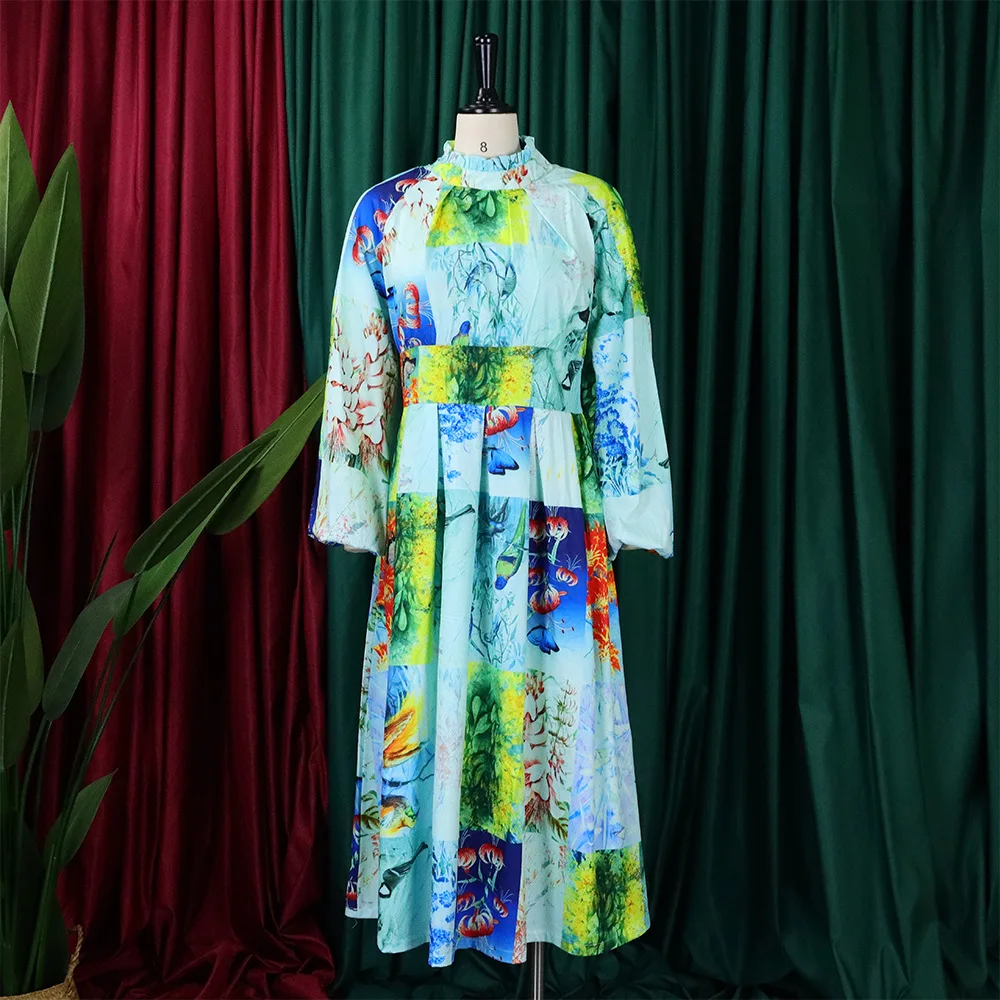 New Trendy Summer Dress High Waist O Neck A-line African Print Women Casual Dresses