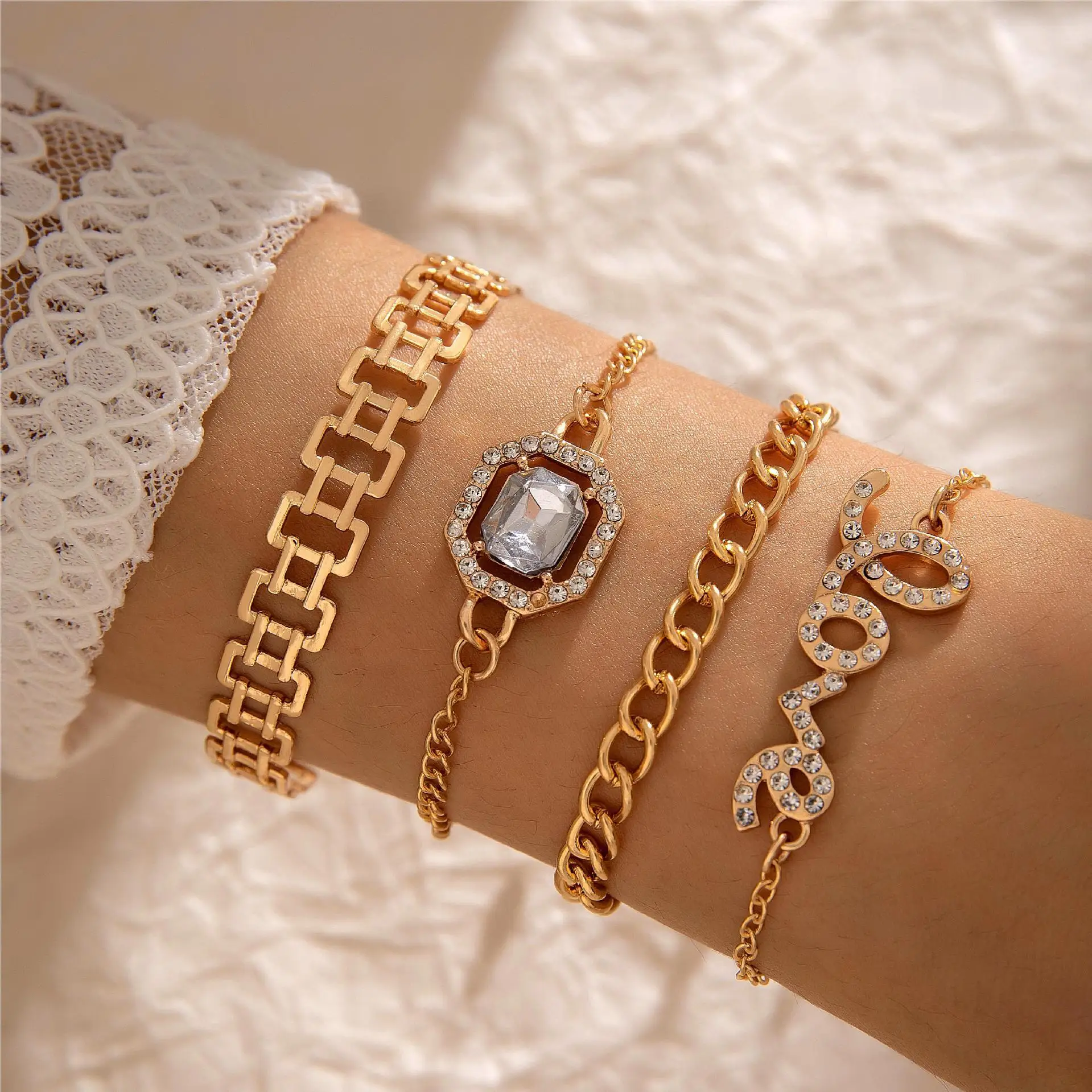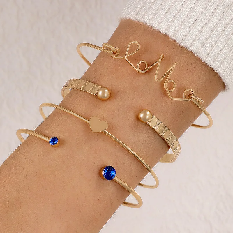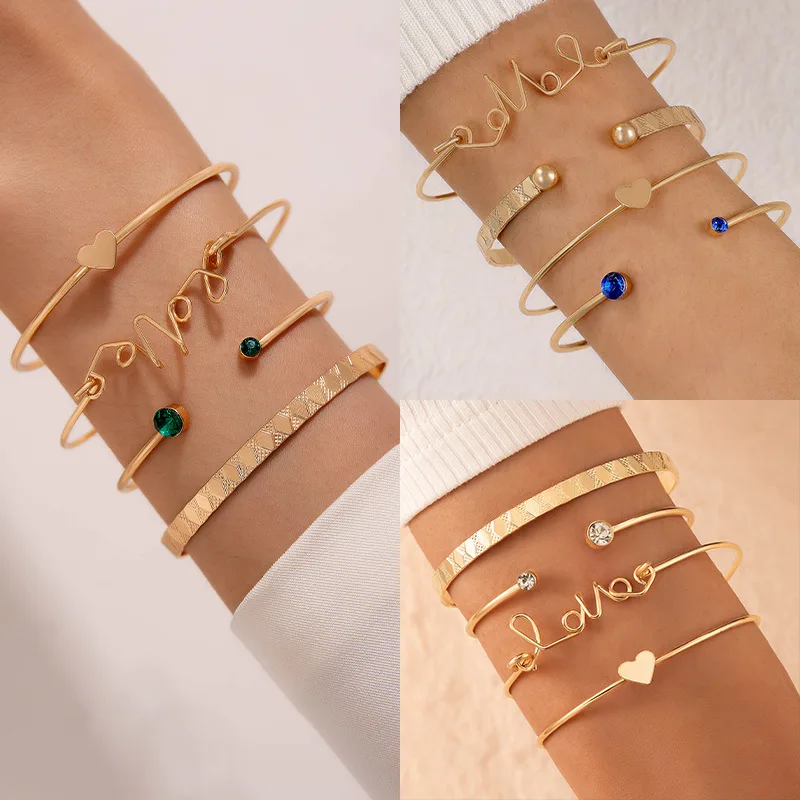 New Vintage Diamond Bracelet Simplicity And Exquisite Heart Metal Bracelet 4-Piece Set Letter Bracelet Charms Jewelry