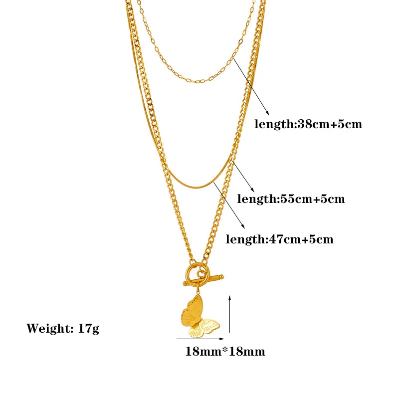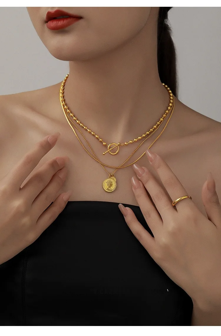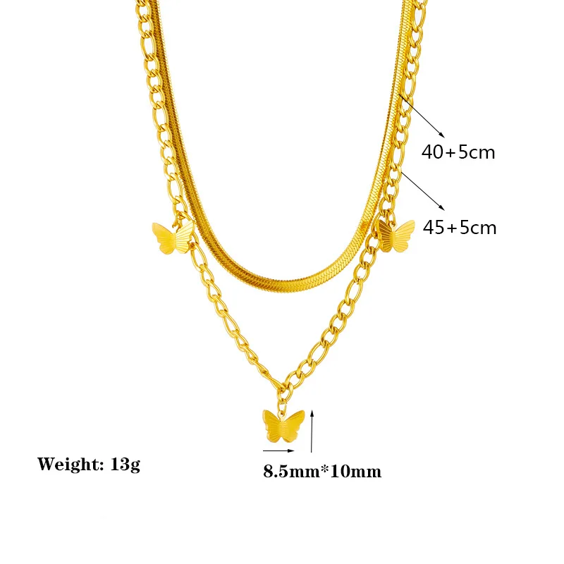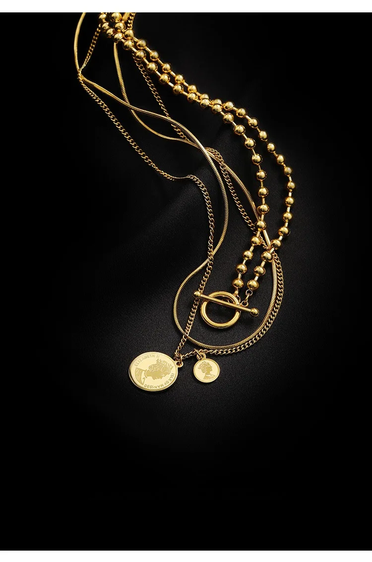 NEW Vintage Gold Cuban Chain Multilayer Overlay Stainless Steel Necklace Butterfly Coin Pendant Pearl Tassel For Women Necklace
