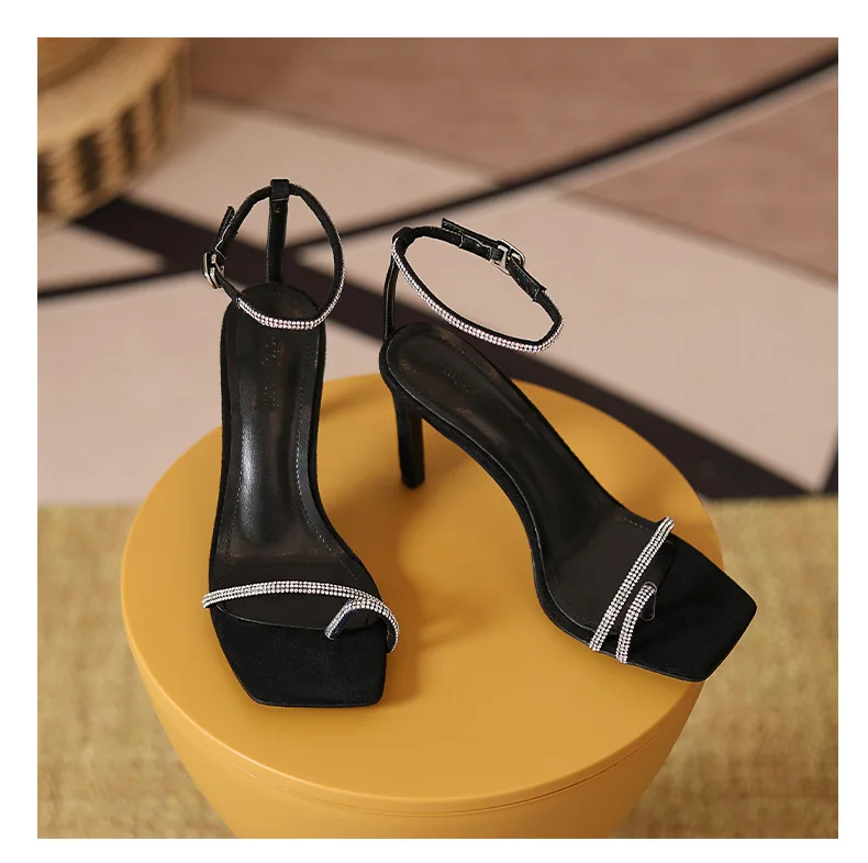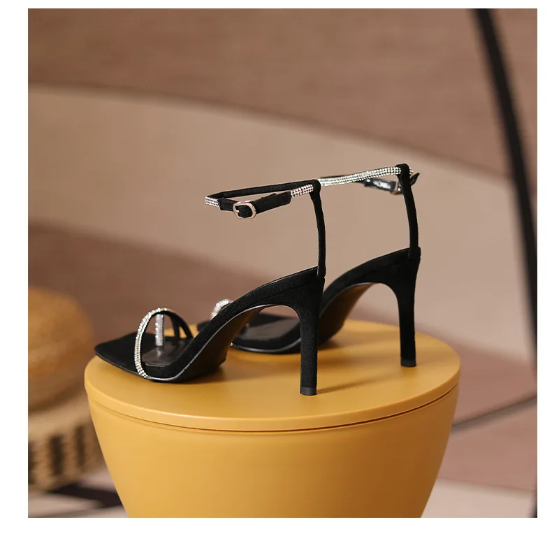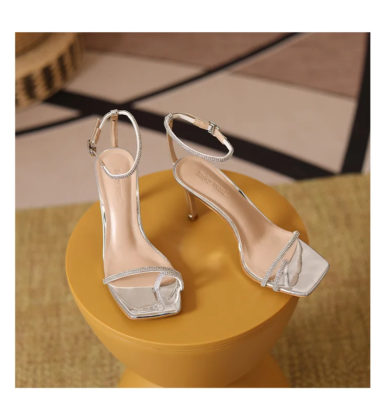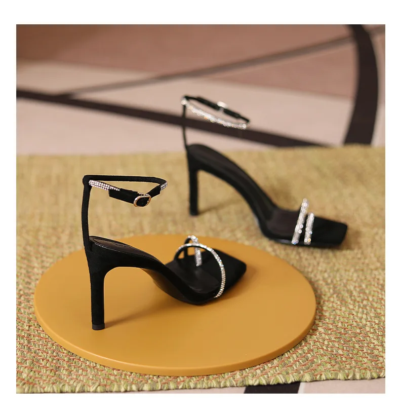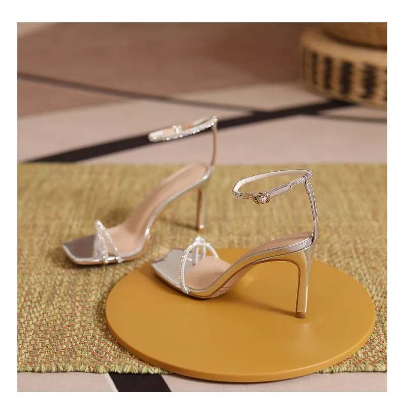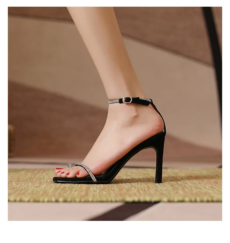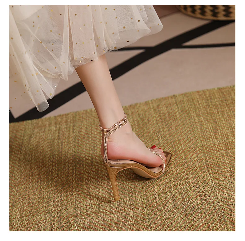 New Women Summer Autumn Fashion Heeled Sandals Female Square-toe T-strap Stilettos Outside Party Banquet Ladies Shoes