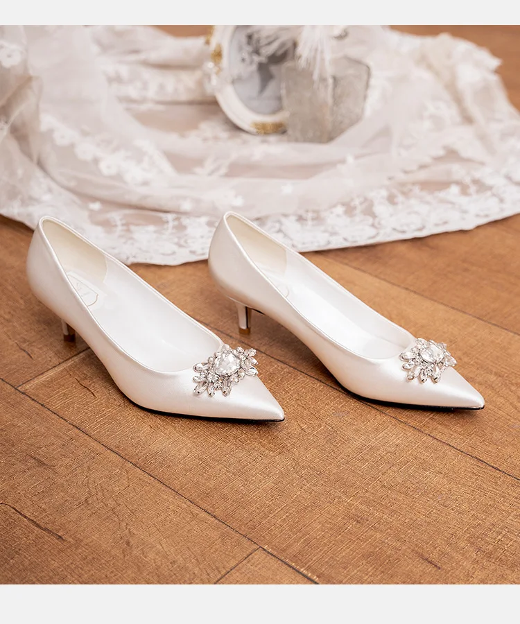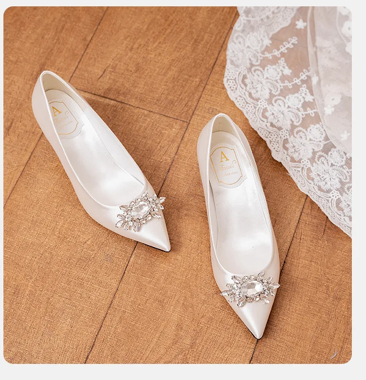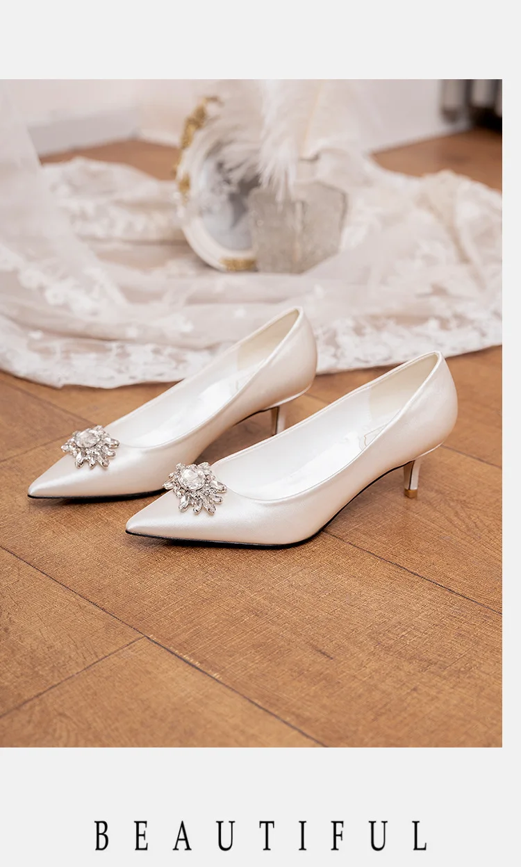 New Women Wedding Elegant Stilettos Shoes Sexy Pointed-toe Rhinestone Female Pumps Spring Autumn Ladies Heeled Sandals