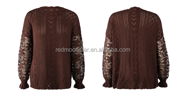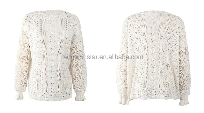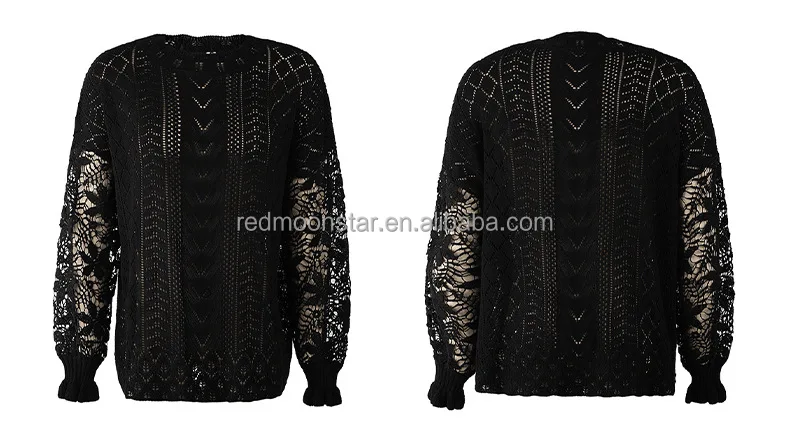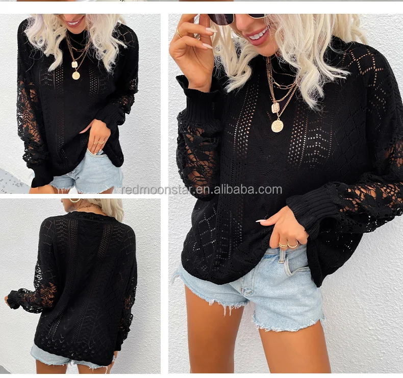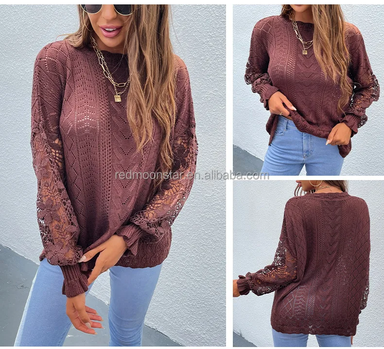 New women's autumn and winter lace stitching knitwear product hollowed out pullover knitted women sweater