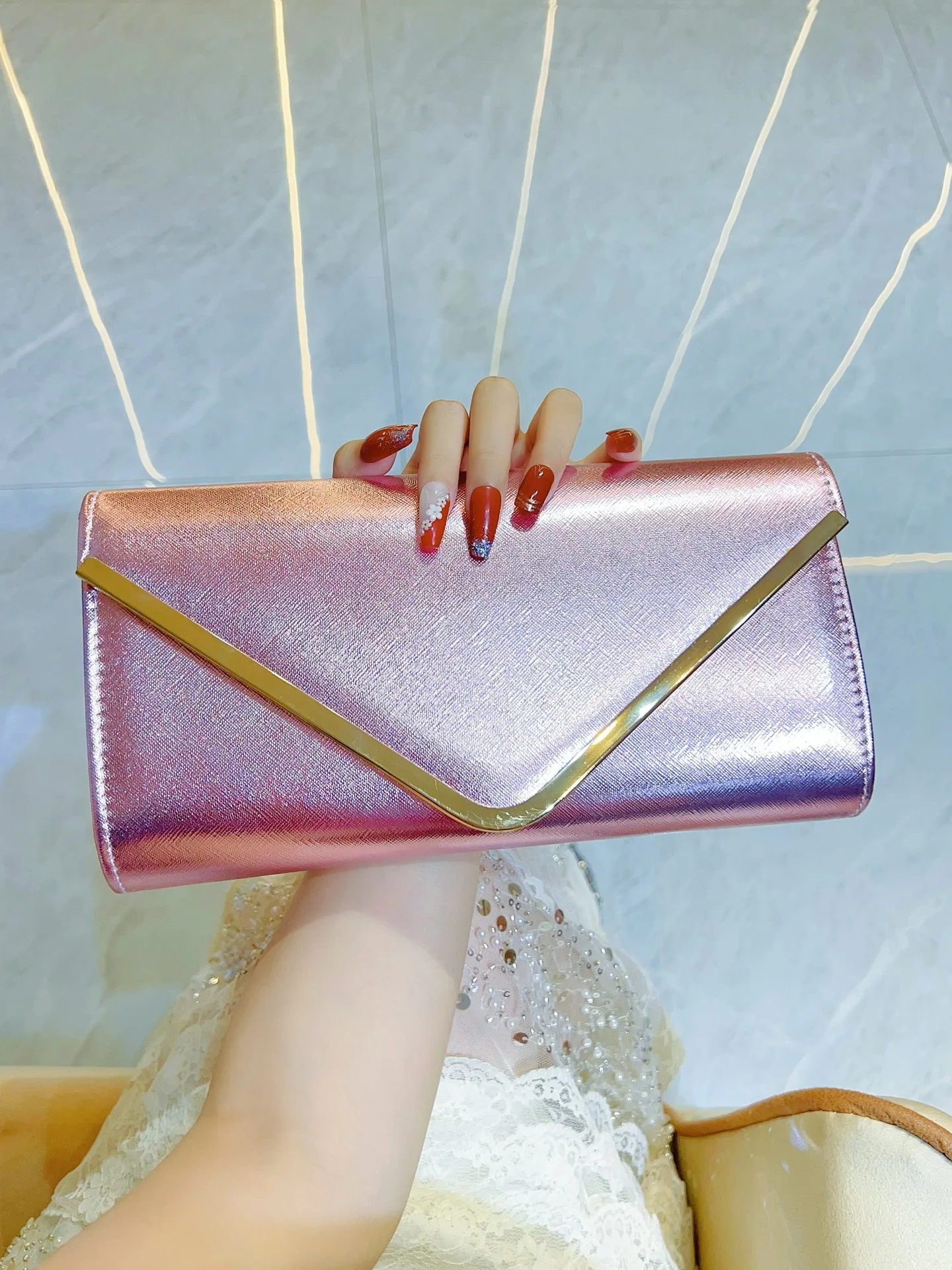 New Women's Envelope Evening Clutch Handbag Elegant Square Bridal Clutch Party Prom Wedding Purse Clutch Shoulder Bag Wallet