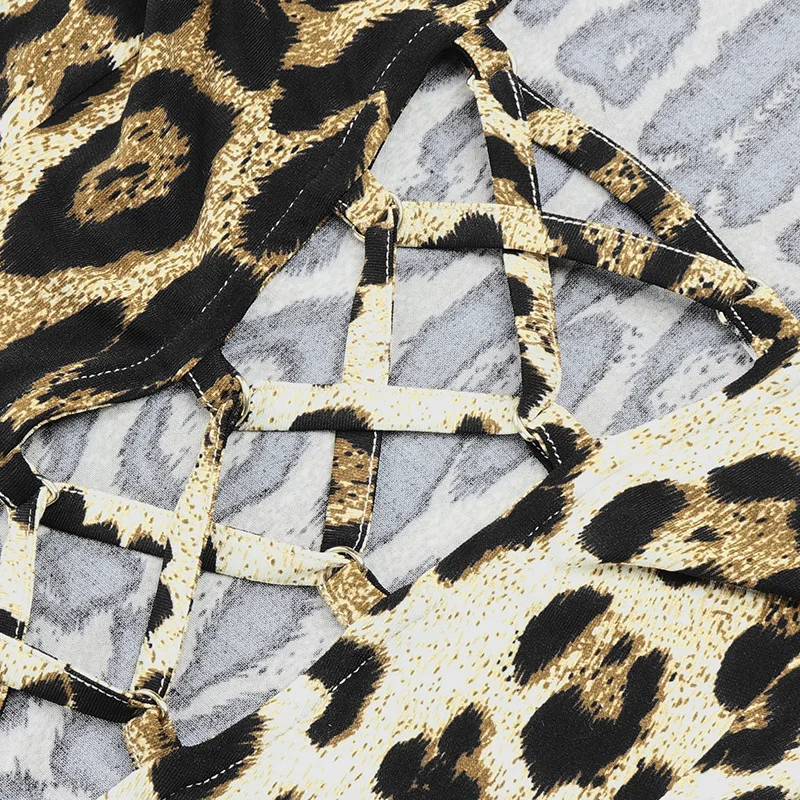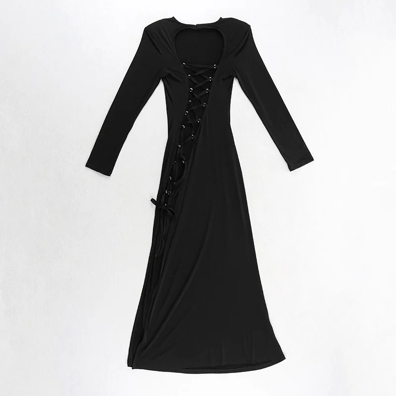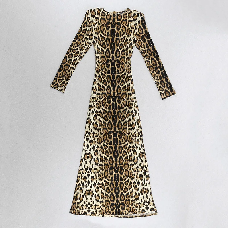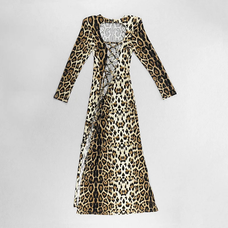 New Women'S Retro Long Sleeve Leopard Weave Hollow Out Long Autumn Winter Dress Temperament Sexy Slit Club Dresses