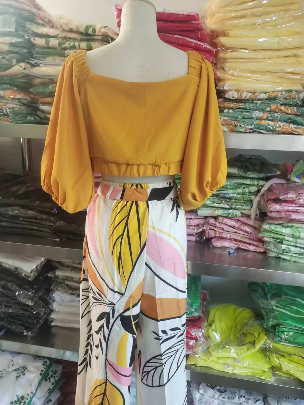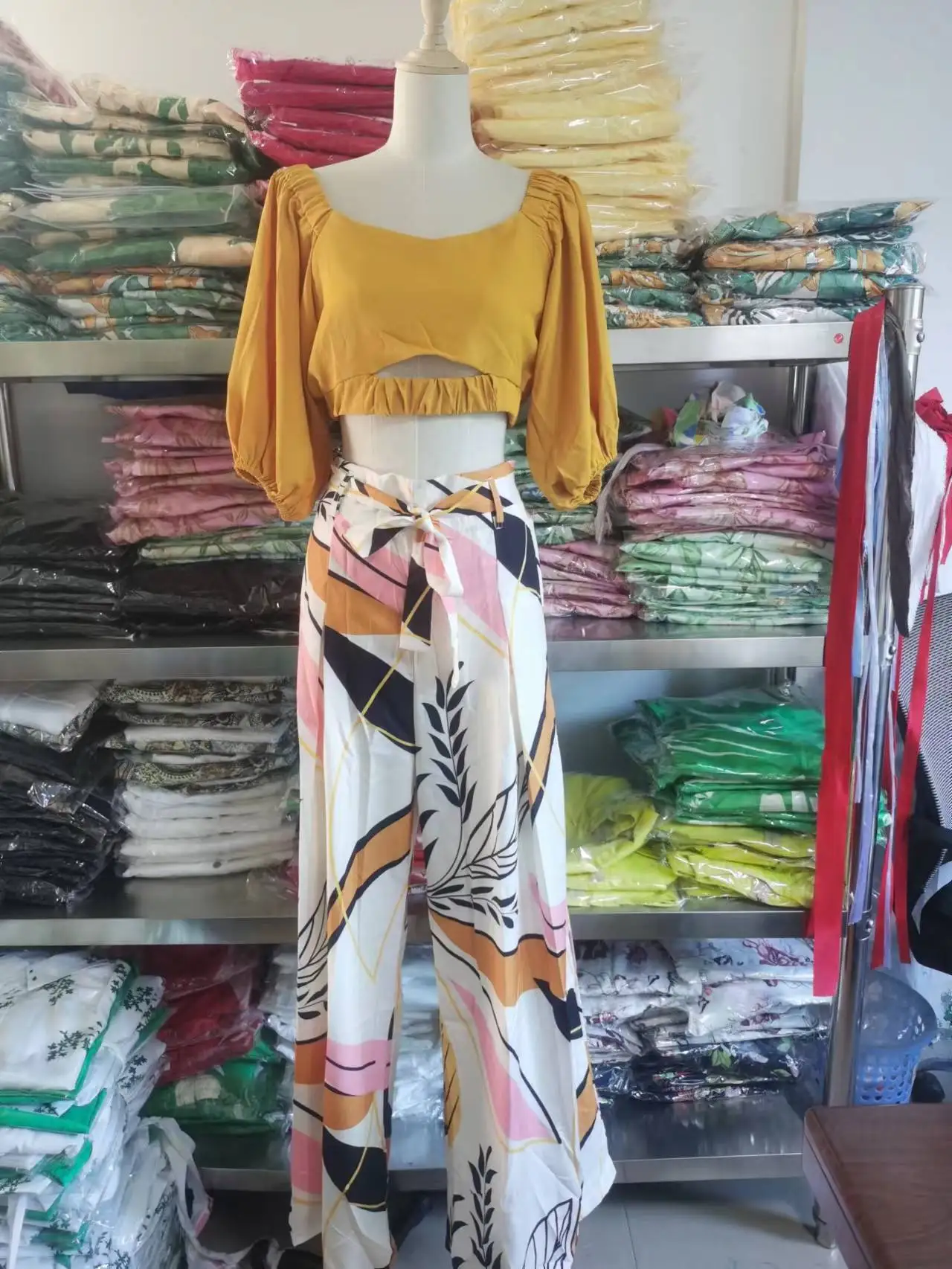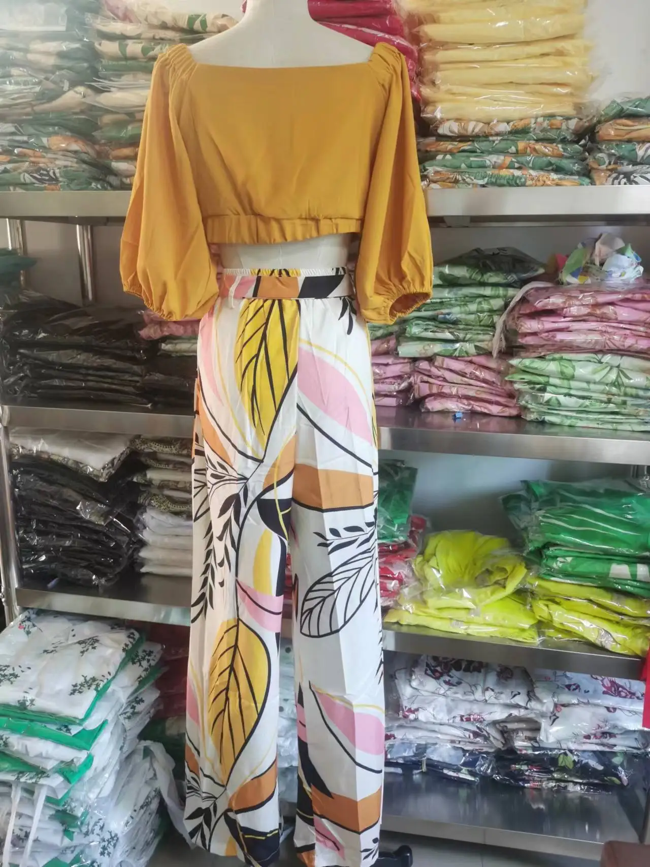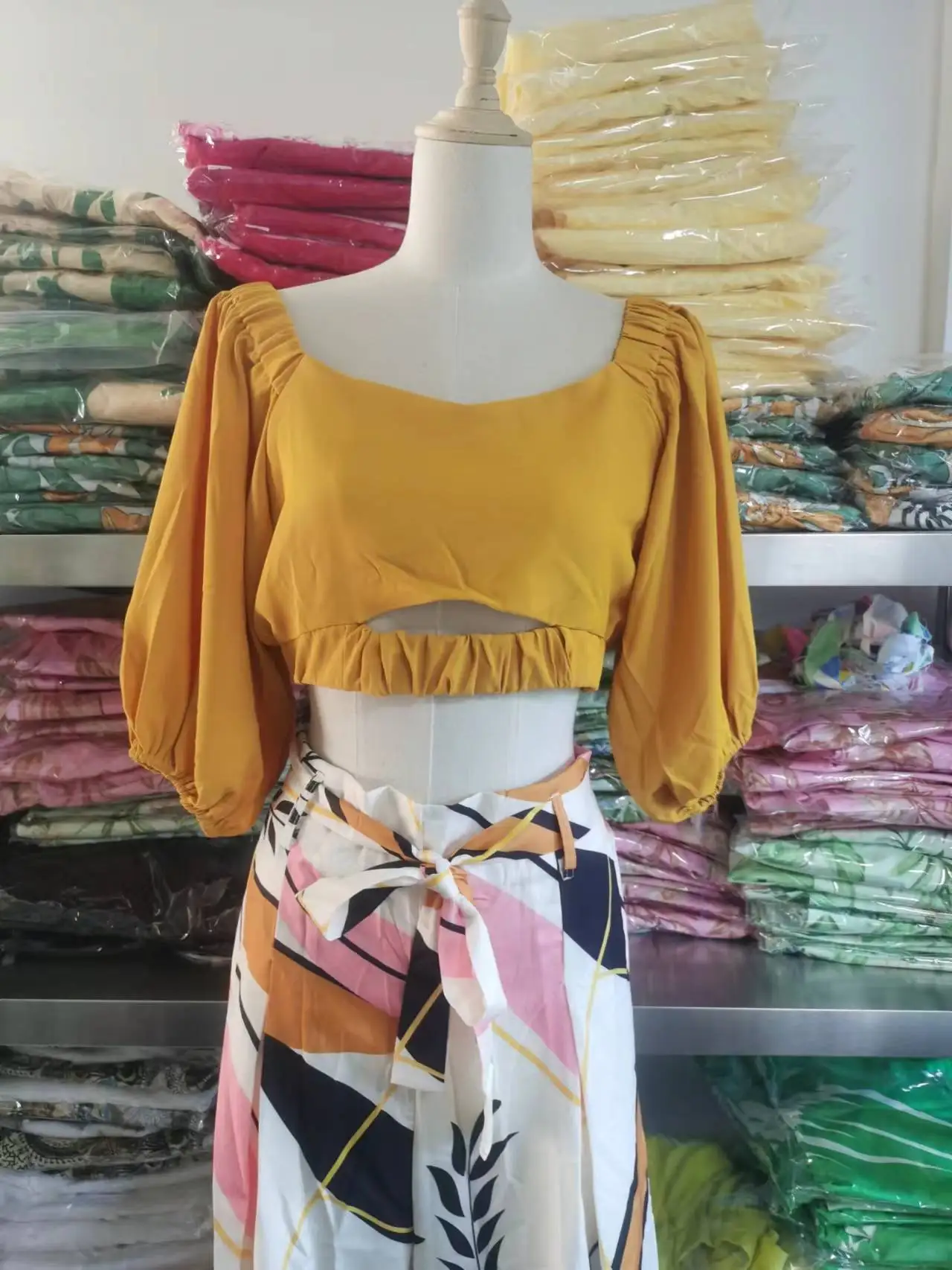 New women's spring oversized printed lapel single breasted shirt high waist wide leg pants set