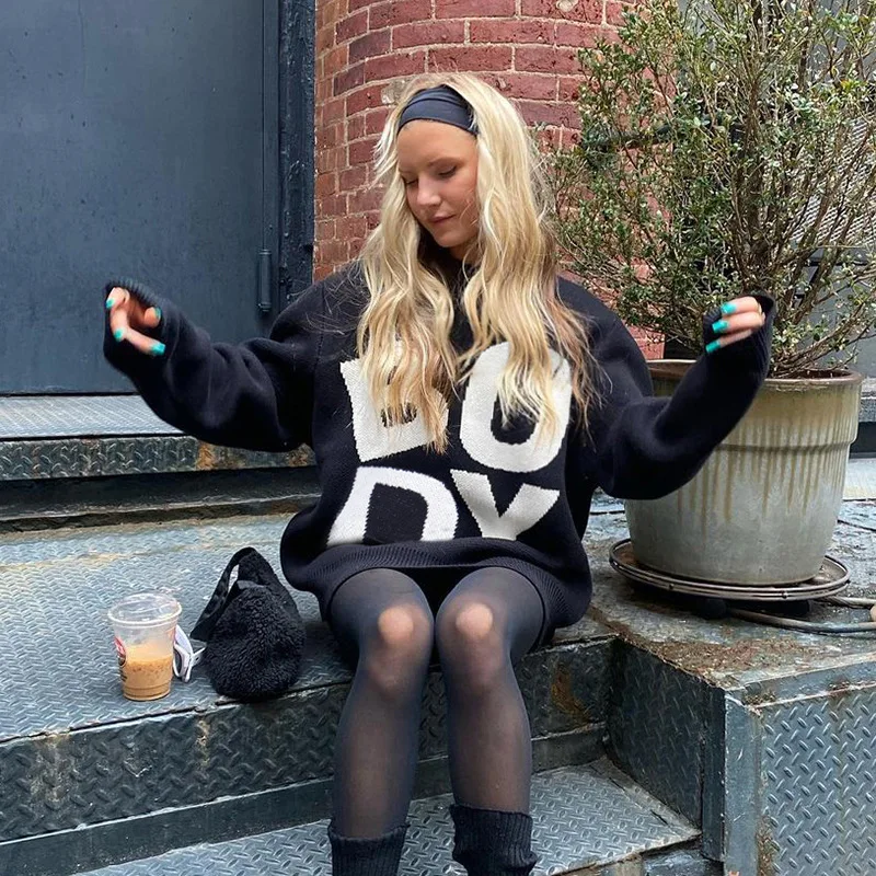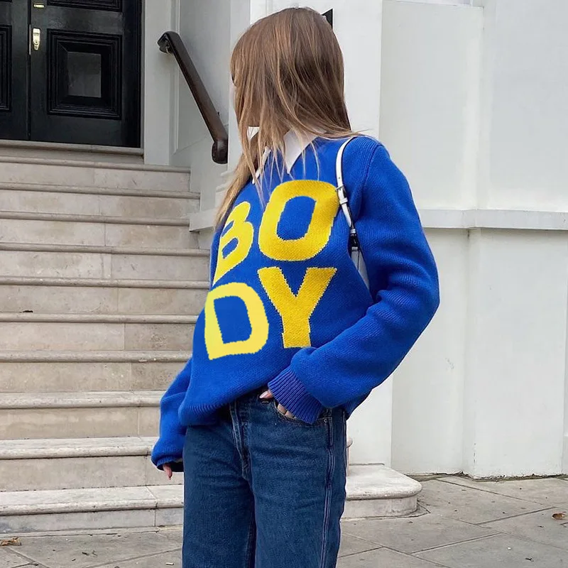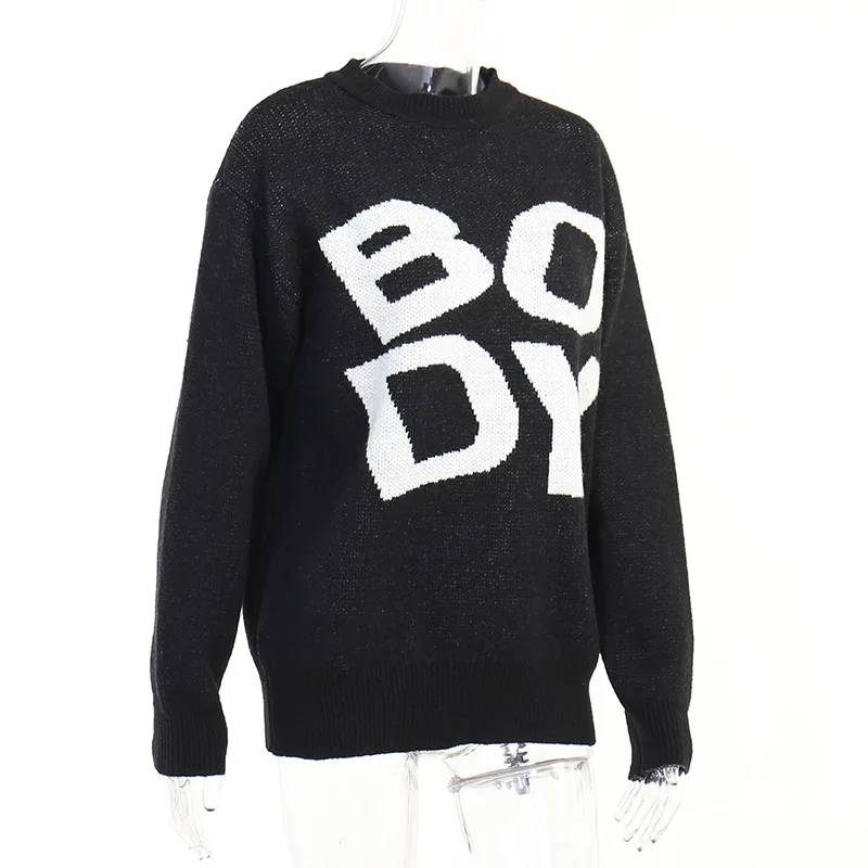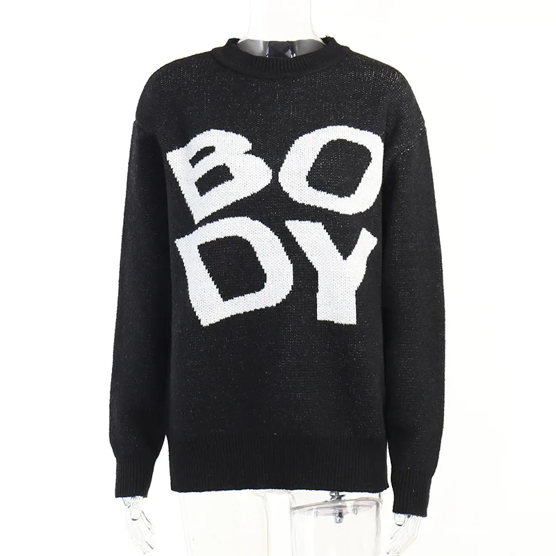 Newest Designer Body Letter Embroidered Pullover Knitting Ugly Christmas Women High Neck Knit Sweater For Women