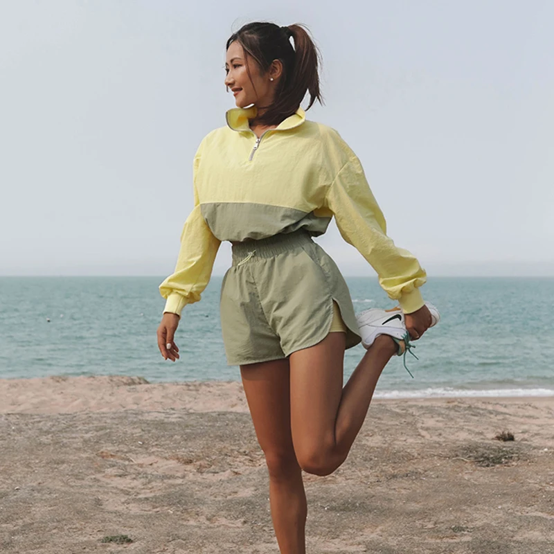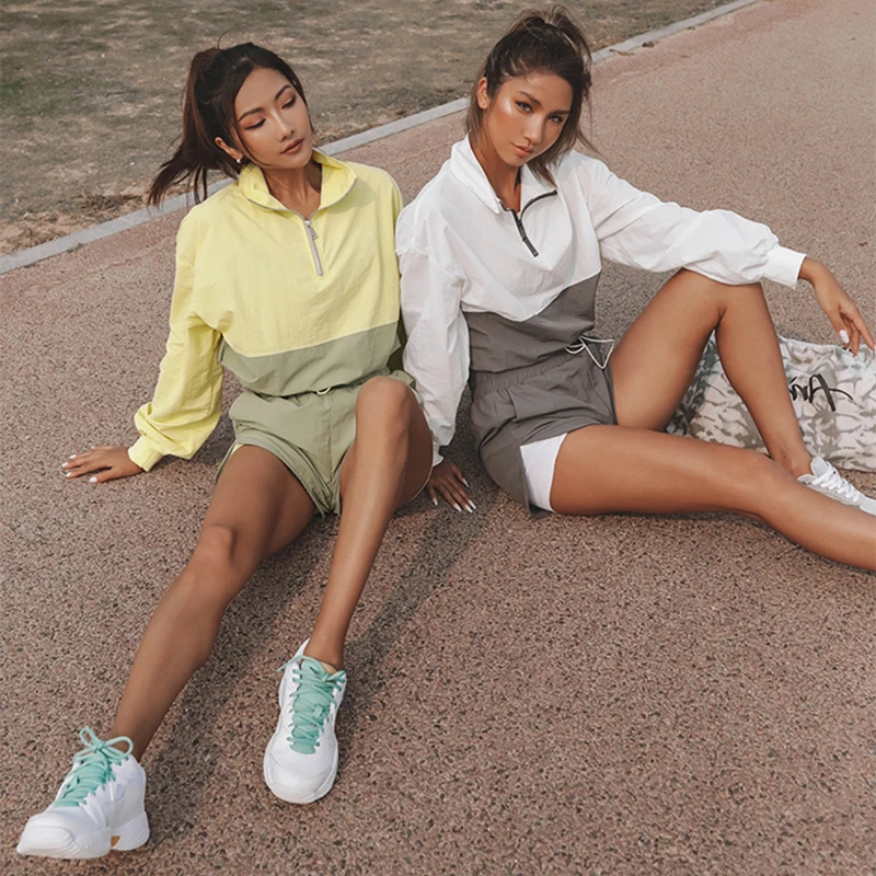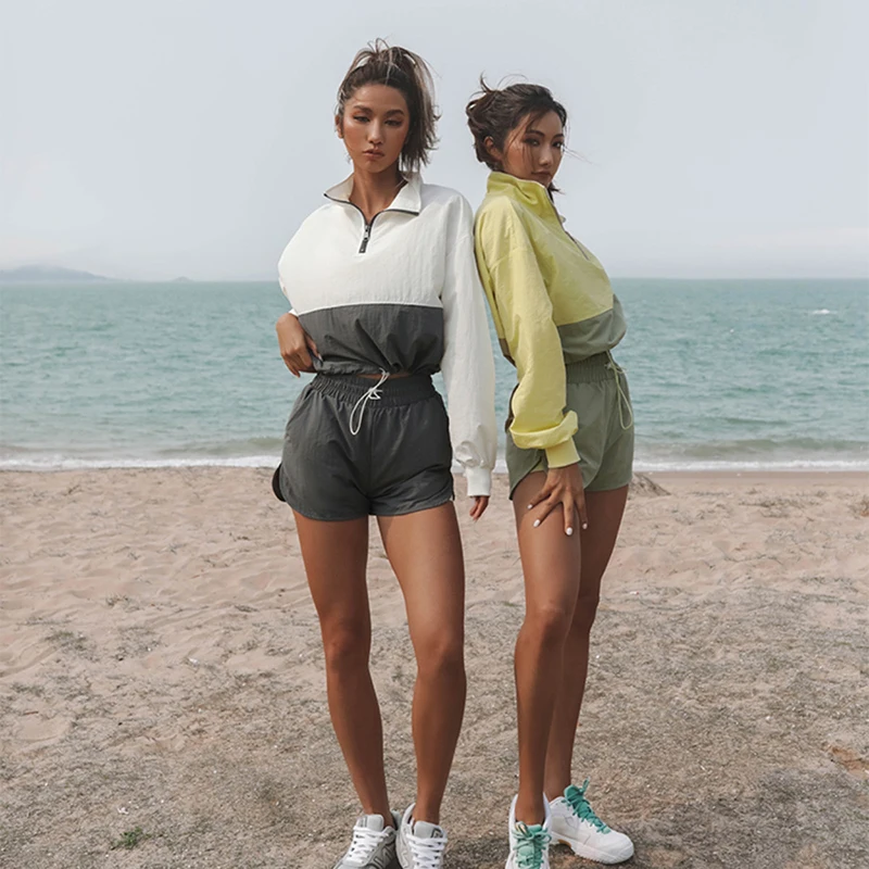 Newest Stylish Long Sleeve Tops And Biker Shorts Sets Women Running Sporty Workout Two Piece Outfits Casual Two Piece Tracksuits