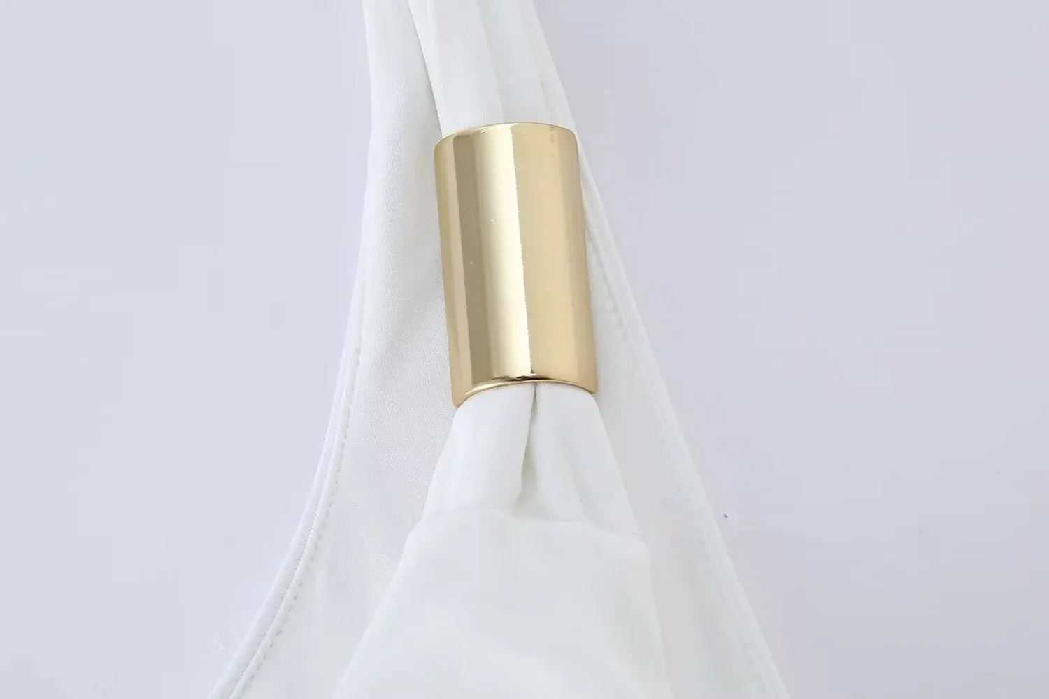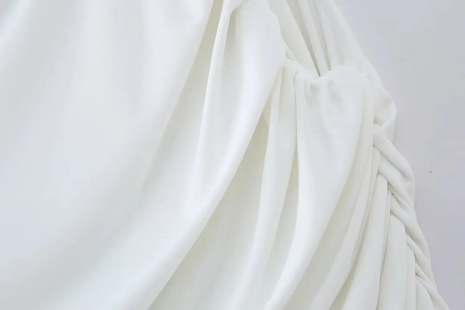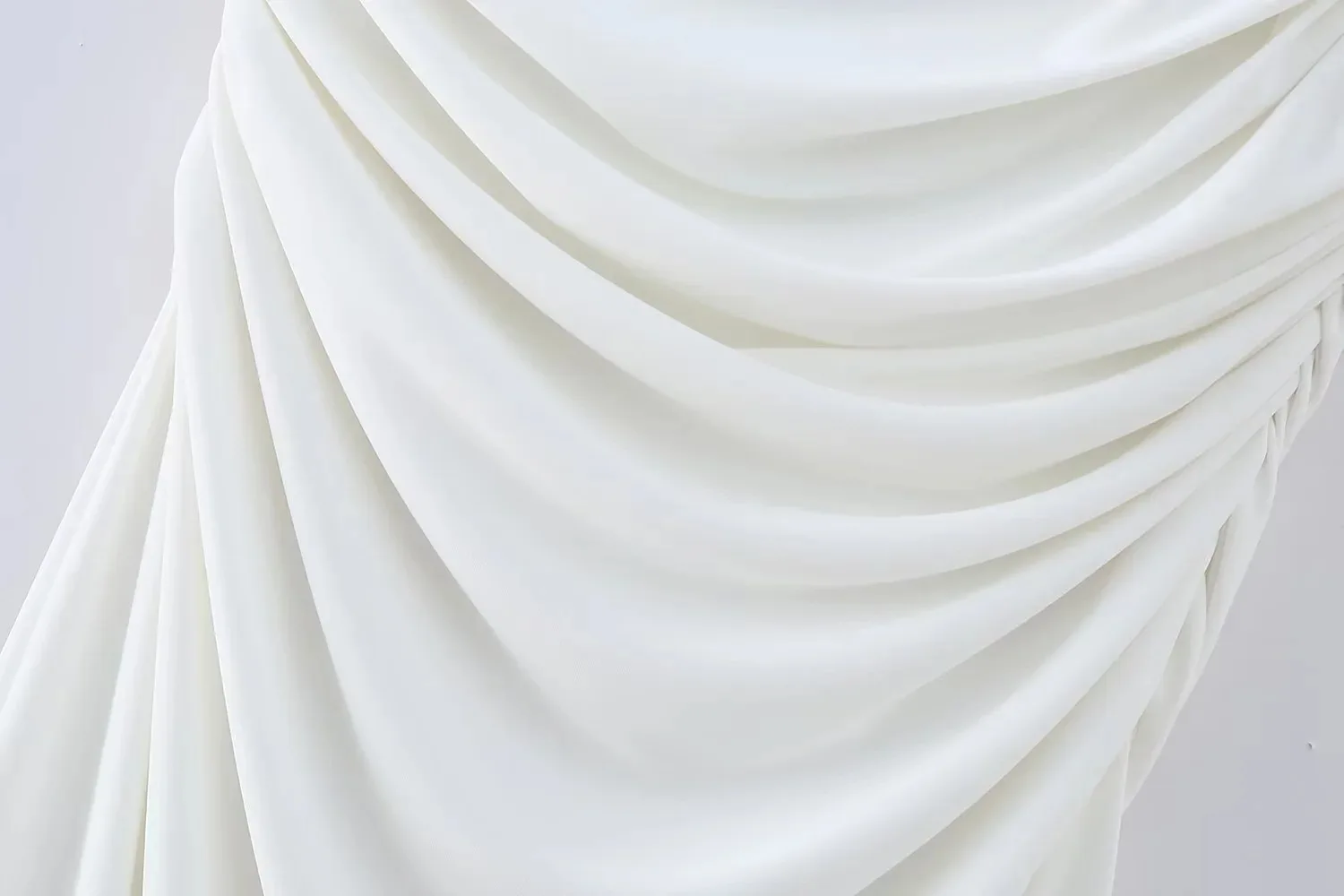 Newest summer ladies elegant party white pleated dress sleeveless one off shoulder simple long dresses women