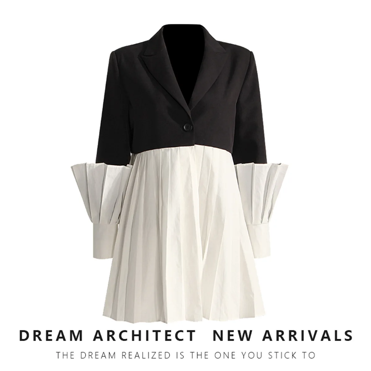 Niche Design Loose Women's Clothing Thin Lantern Sleeve Pleated Dress 2023 Fashion Trend Contrast Shirt Dress Women's Dresses