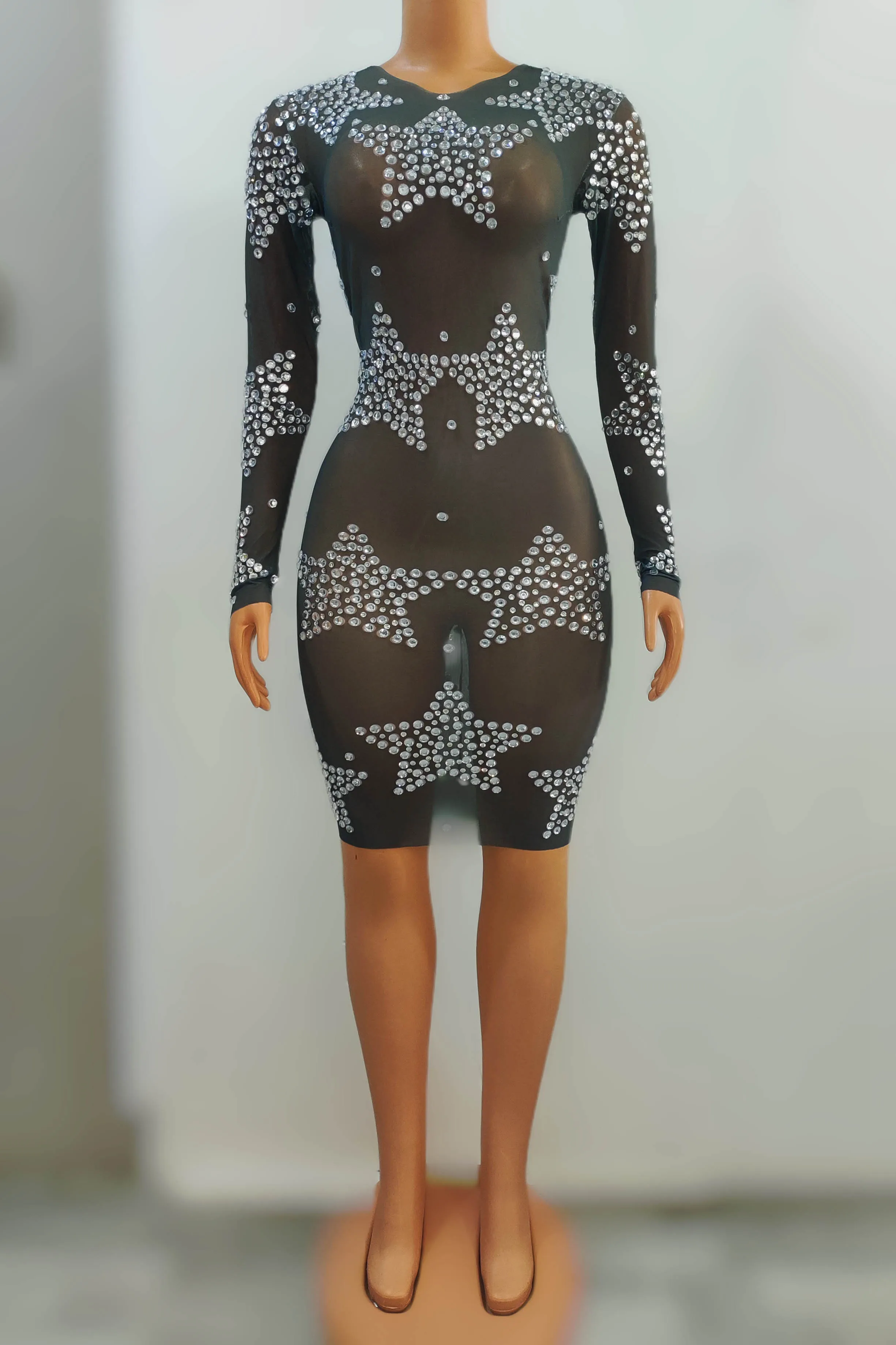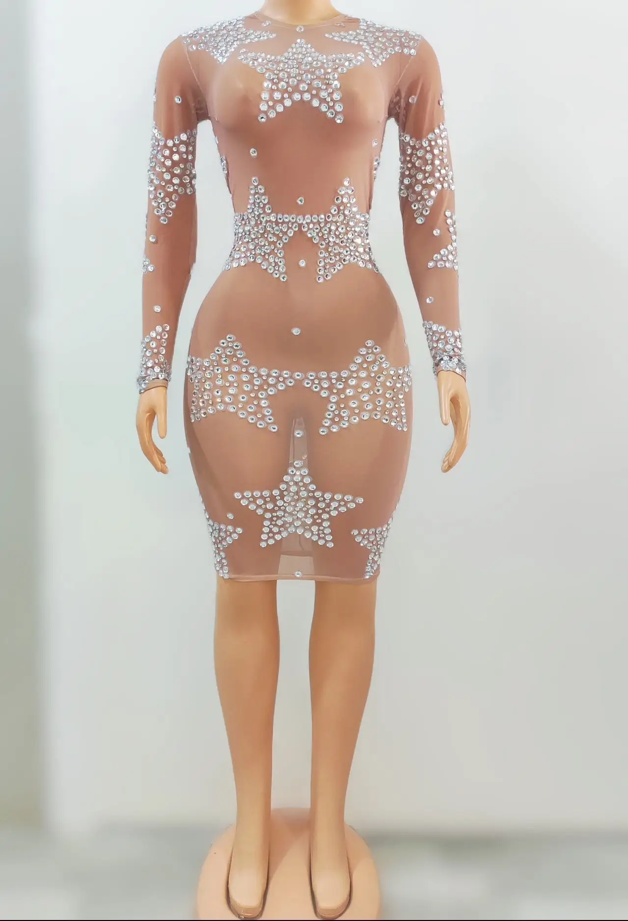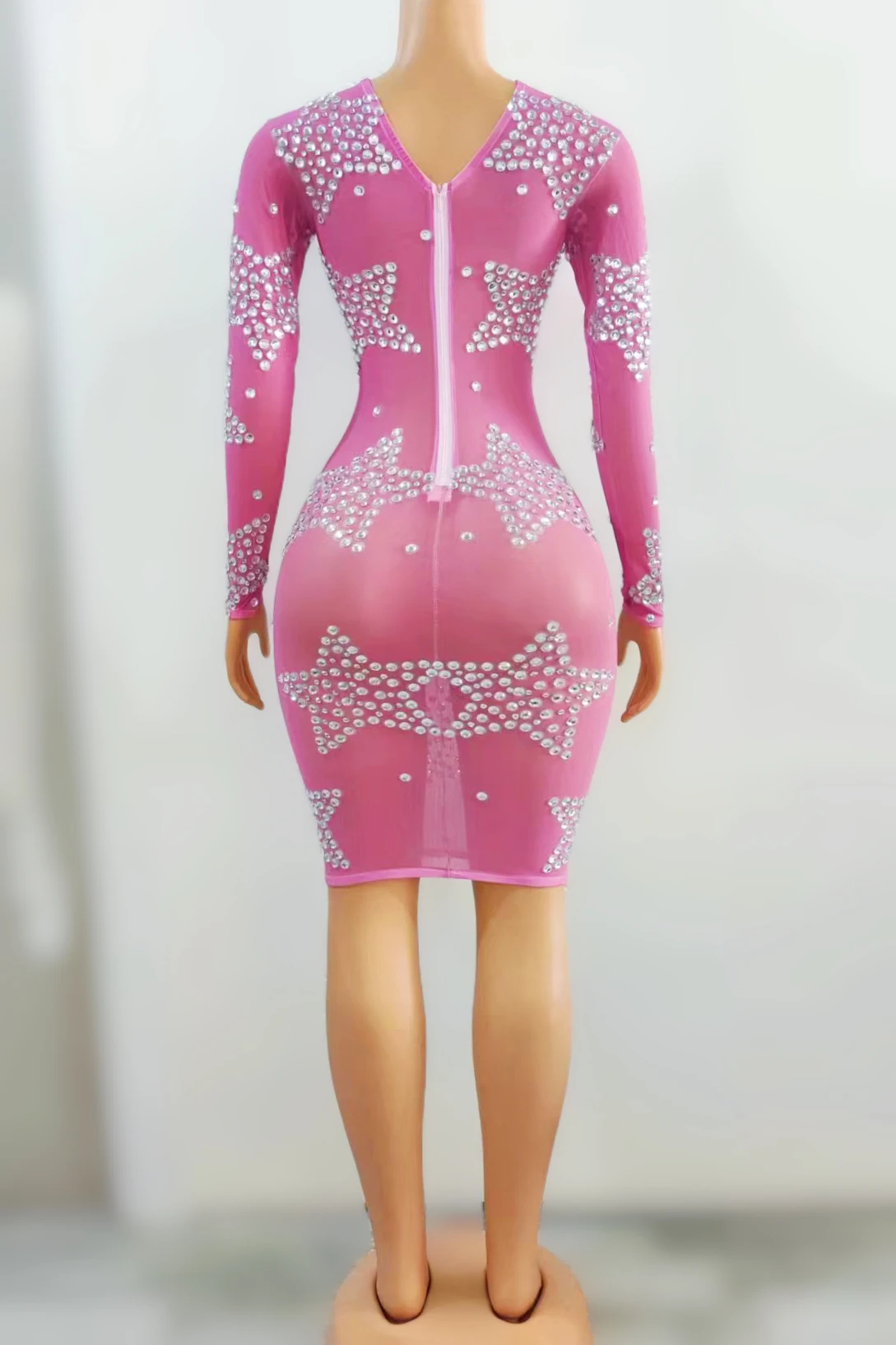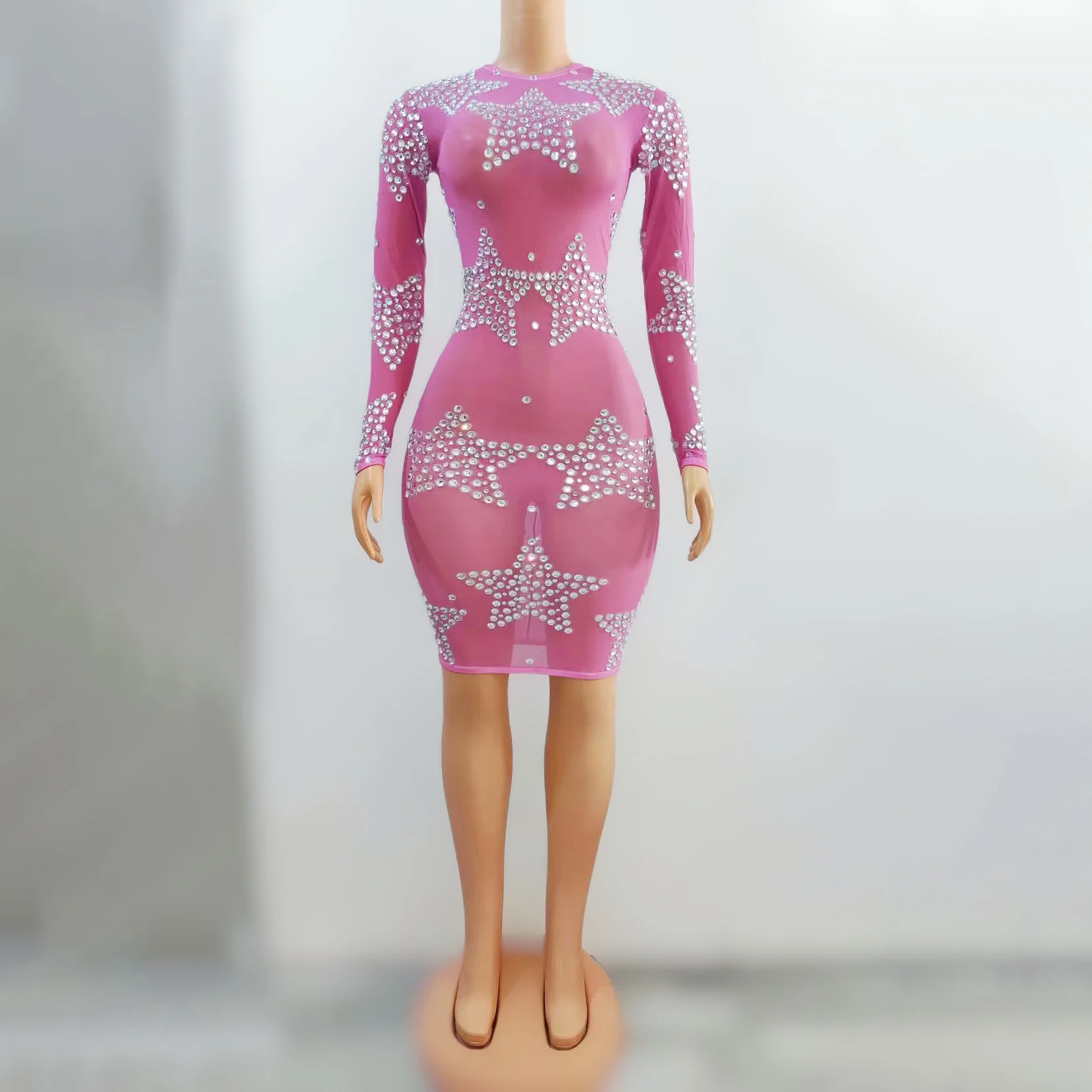 NOVANCE new product stars pink see through mesh glittering stones short gown dresses women party sexy evening gown for party