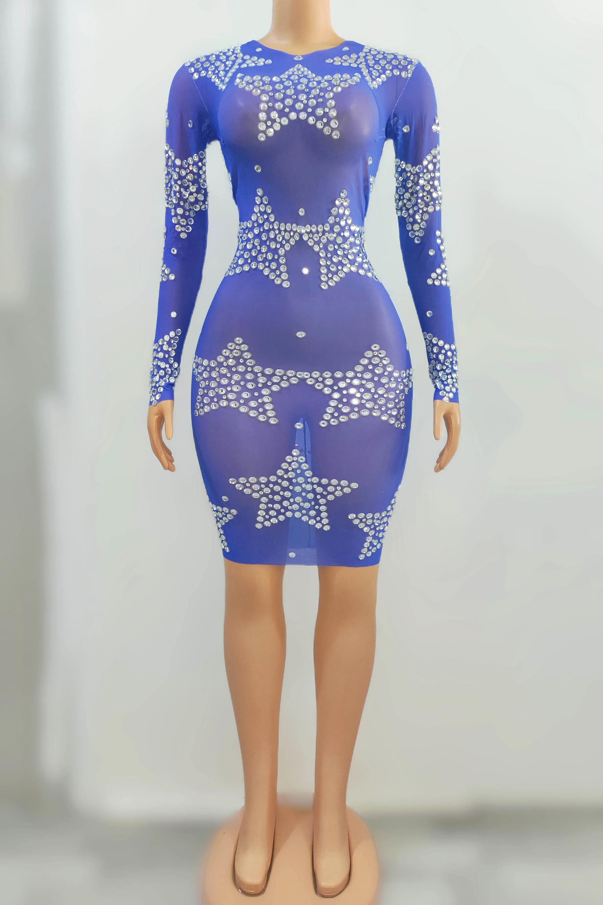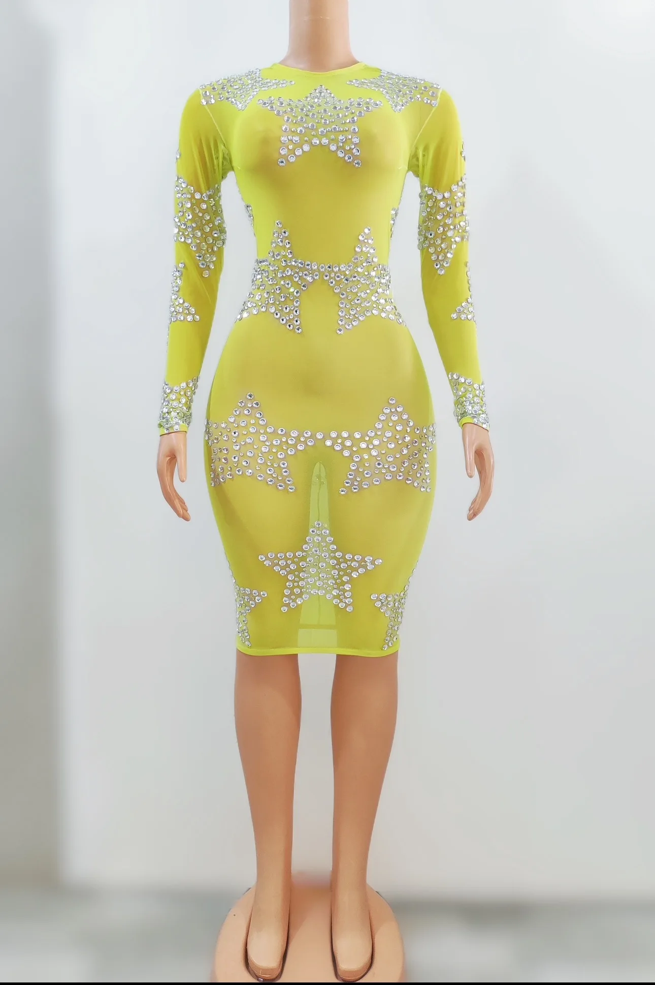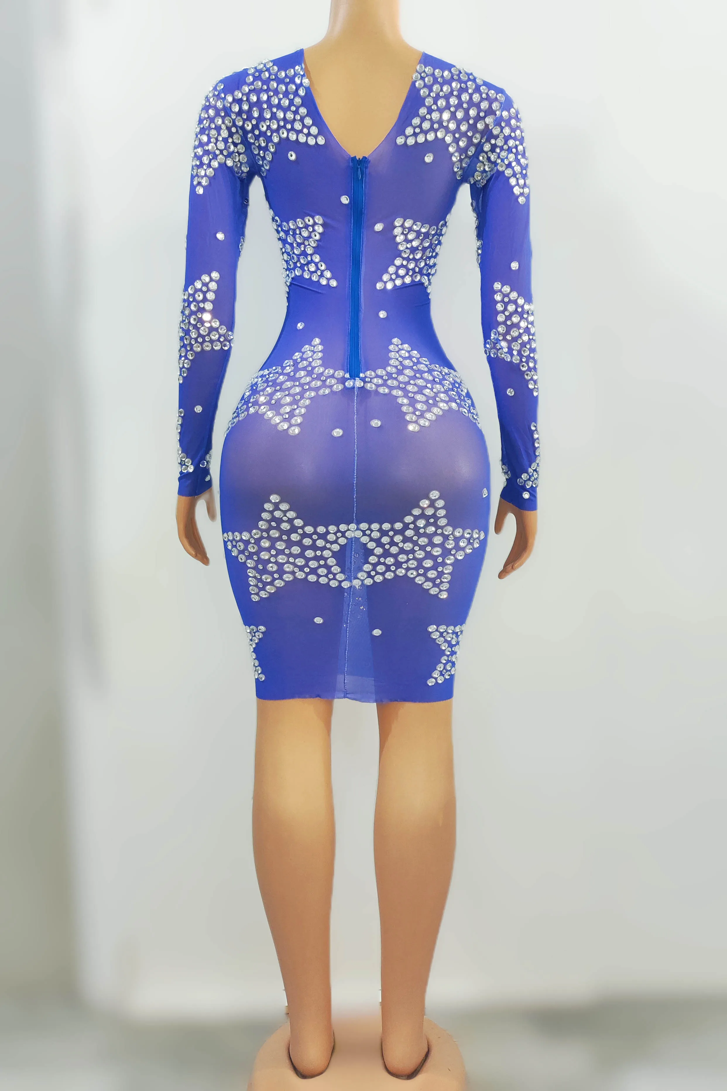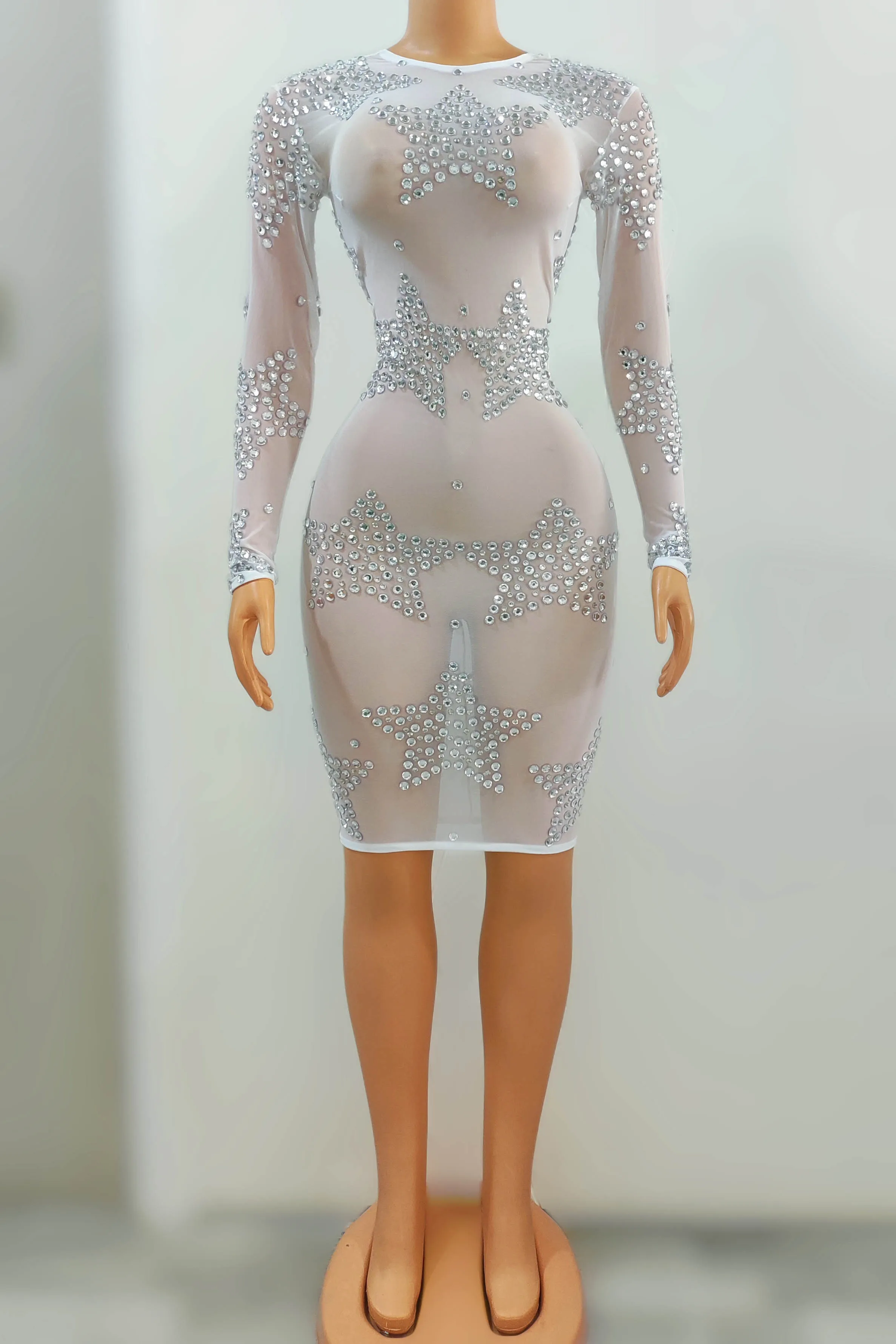 NOVANCE new product stars pink see through mesh glittering stones short gown dresses women party sexy evening gown for party