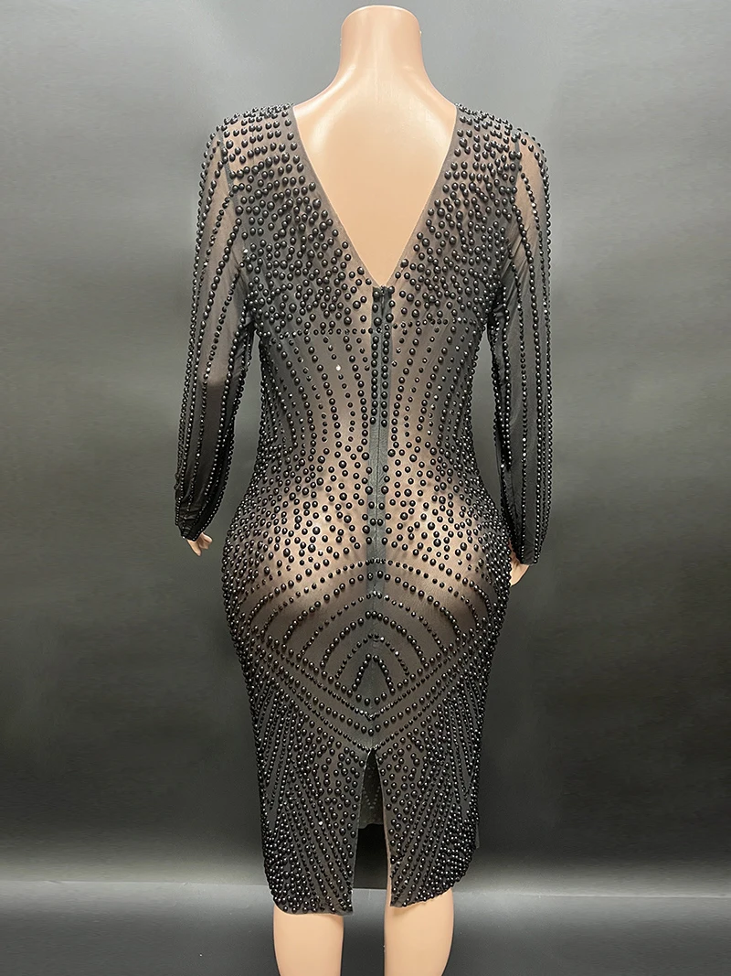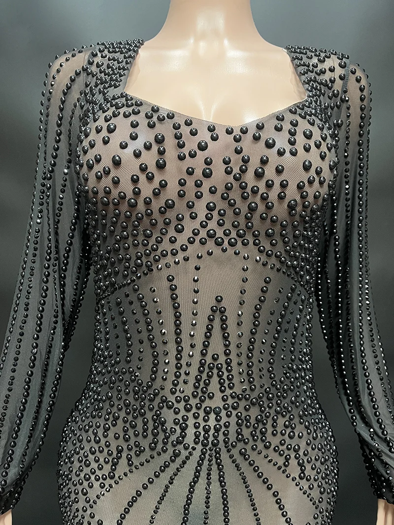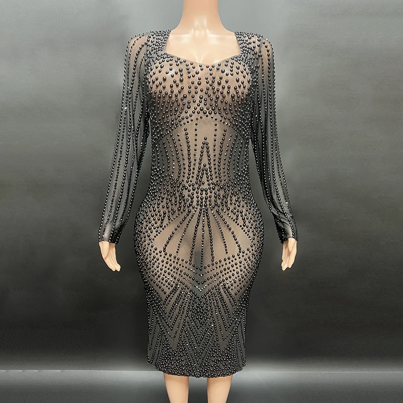 NOVANCE popular products 2023 trending midi length sheer black dresses women lady elegant square neck luxury evening dresses