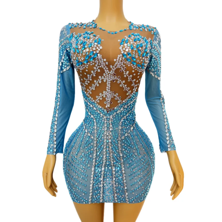 NOVANCE robes de soiree Elegant 2023 new sexy mini dazzling diamonds blue dress night bodycon club dress for birthday party
