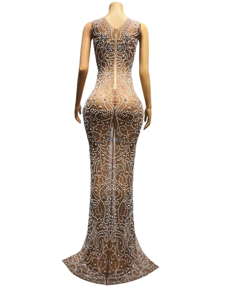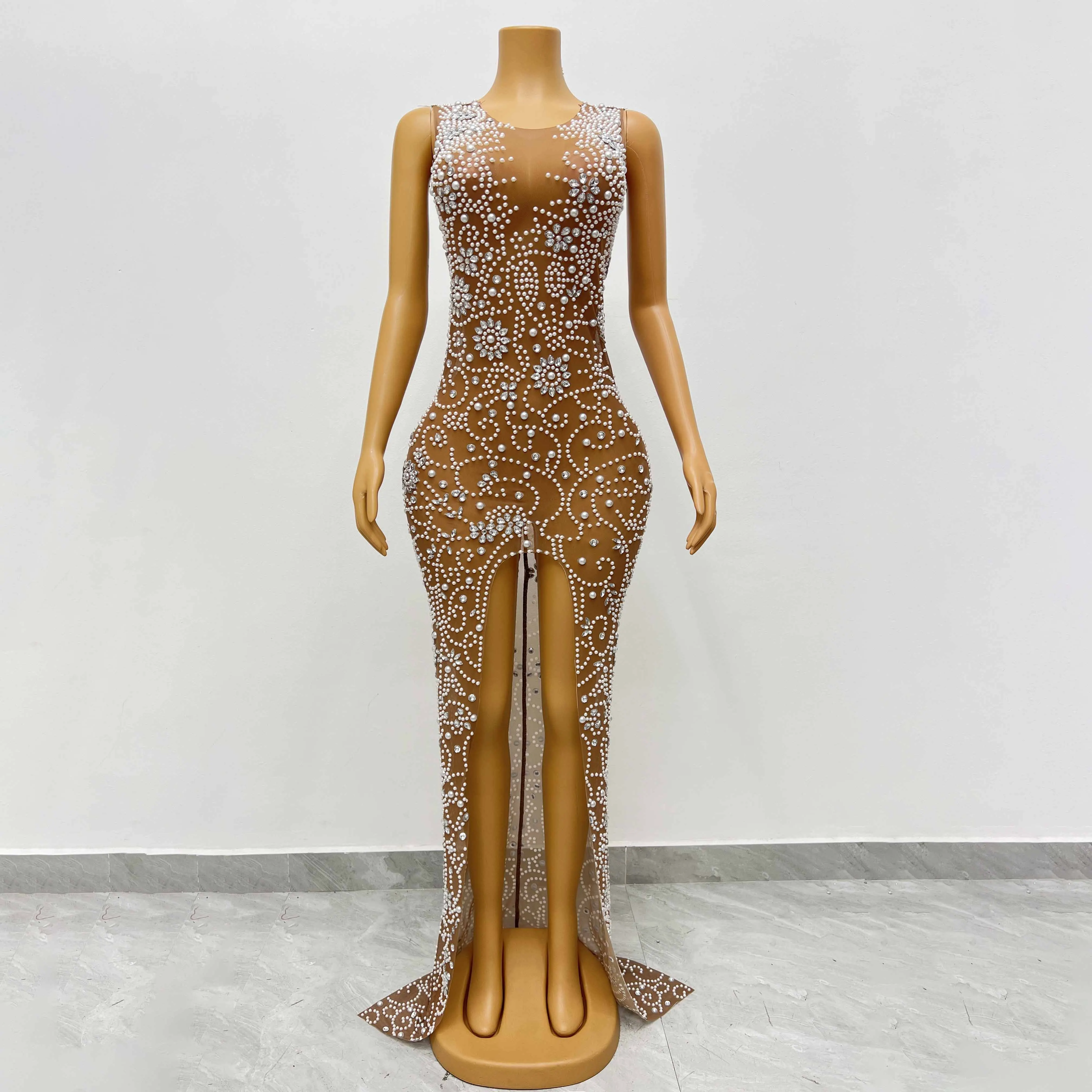 NOVANCE robes decontractes femmes scoop neck high split shiny diamond pearl plus size evening gown vestido de graduation
