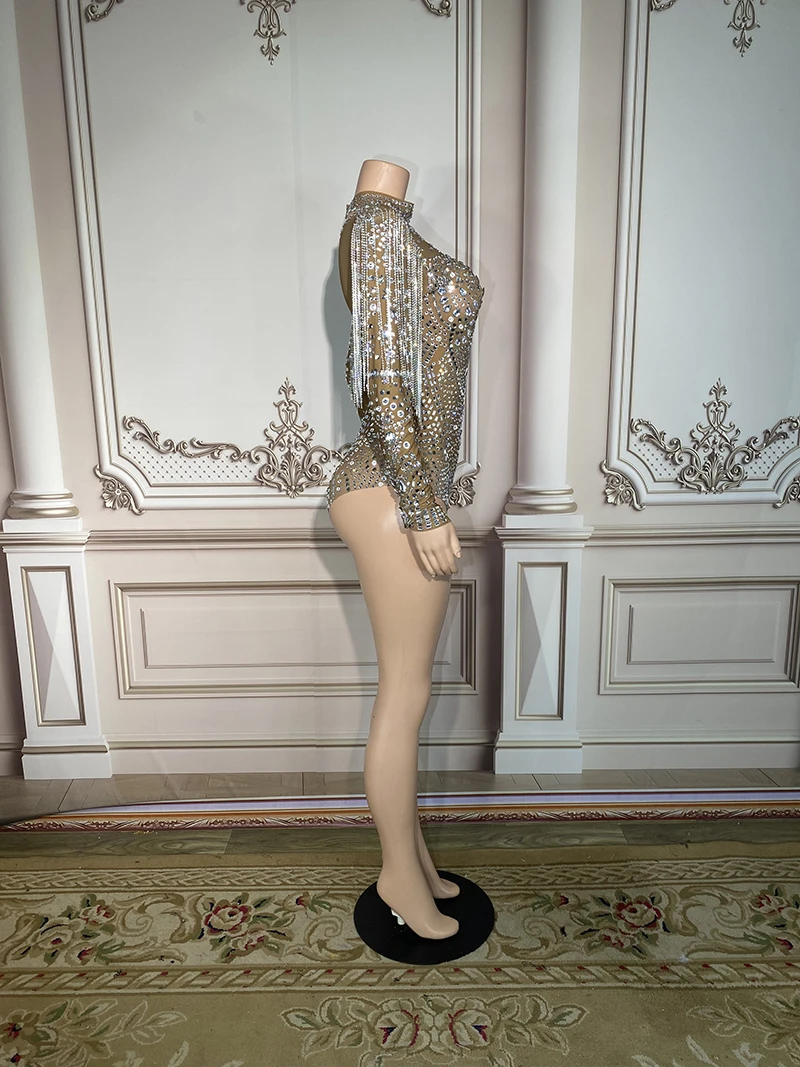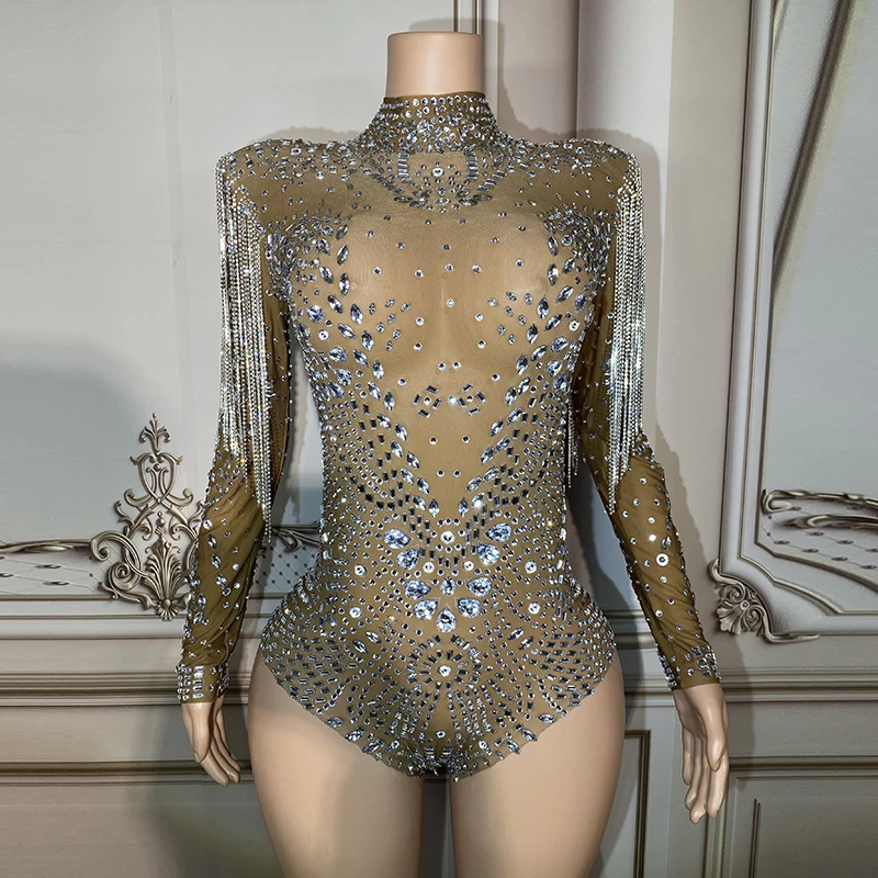 Novance Y2897 Trendy Rompers Stretchy Summer Bodysuit Diamonds Tights Club Wear Sexy Playsuit High Waist Crop Top Bodysuit