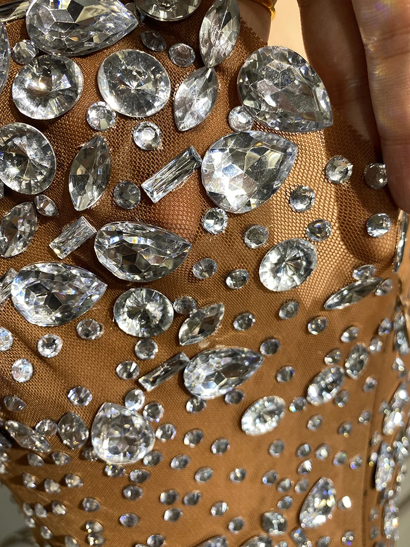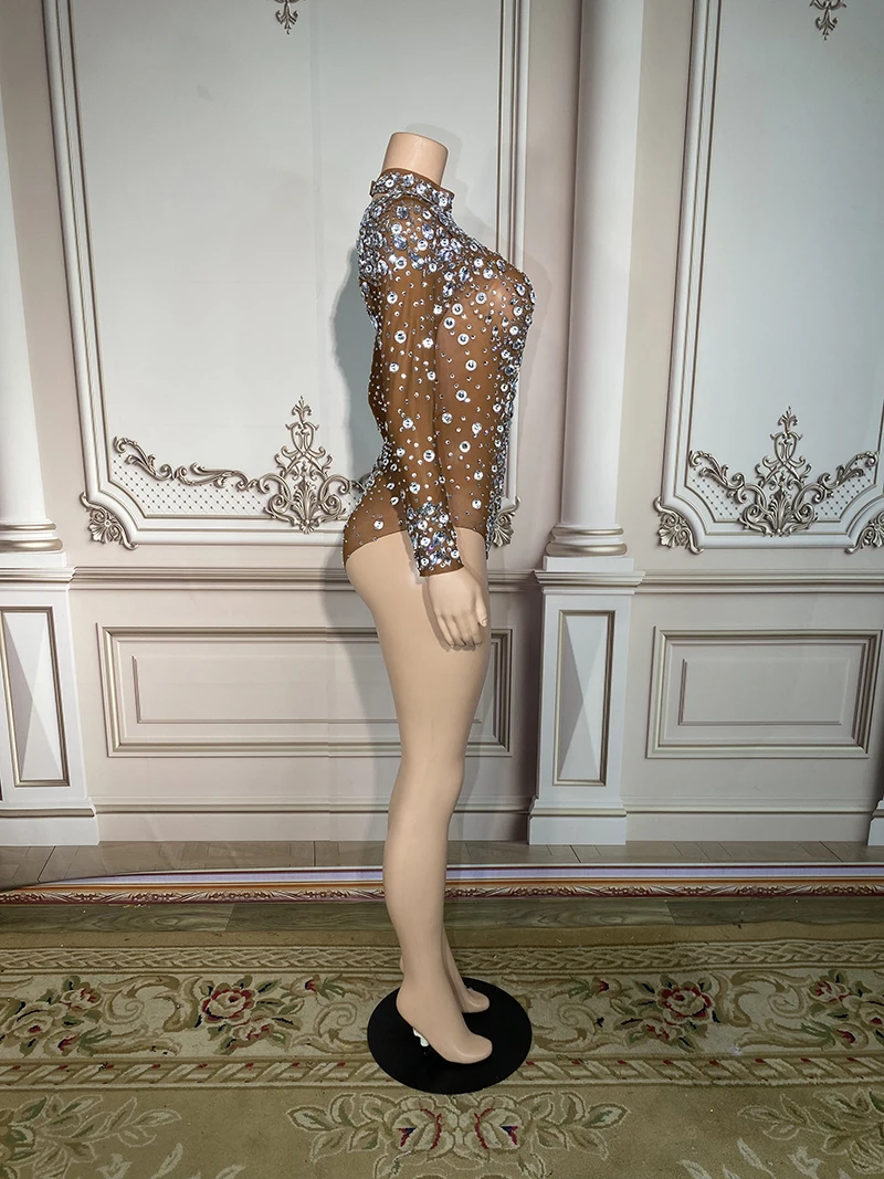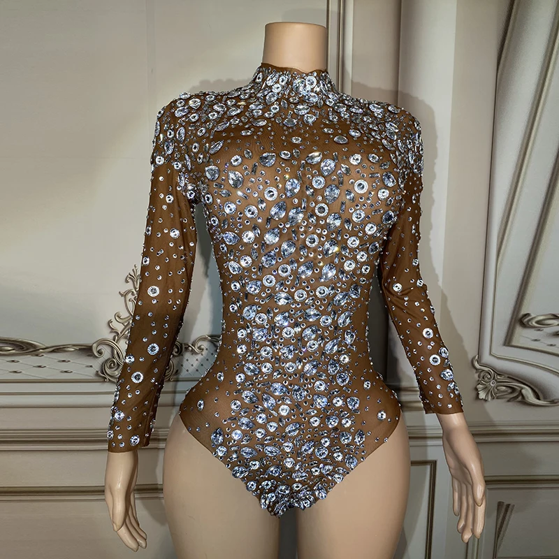 Novance Y2898 Stretchy Silver Rhinestone Jumpsuit Diamonds Custom Mesh Sexy Club Wear Bodysuits Women Overweight Jumpsuit