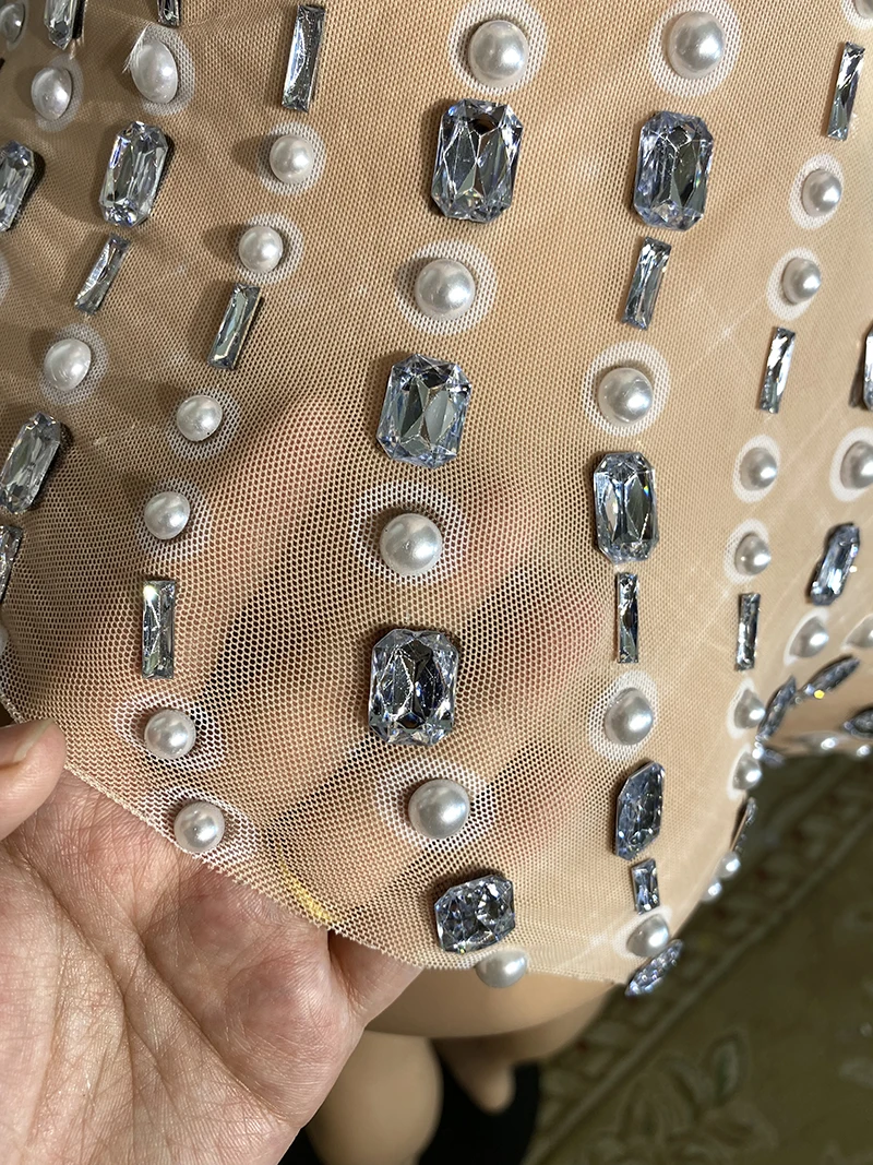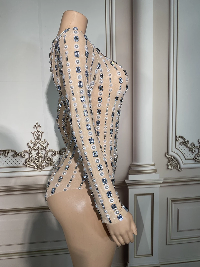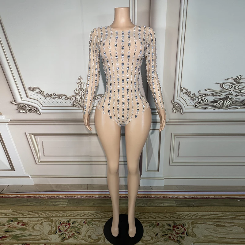 Novance Y2902 Sparkly Diamond Mesh Catsuit Latex Bodysuit Performance Wear Latin Dance Party Bodycon One Piece Jumpsuit