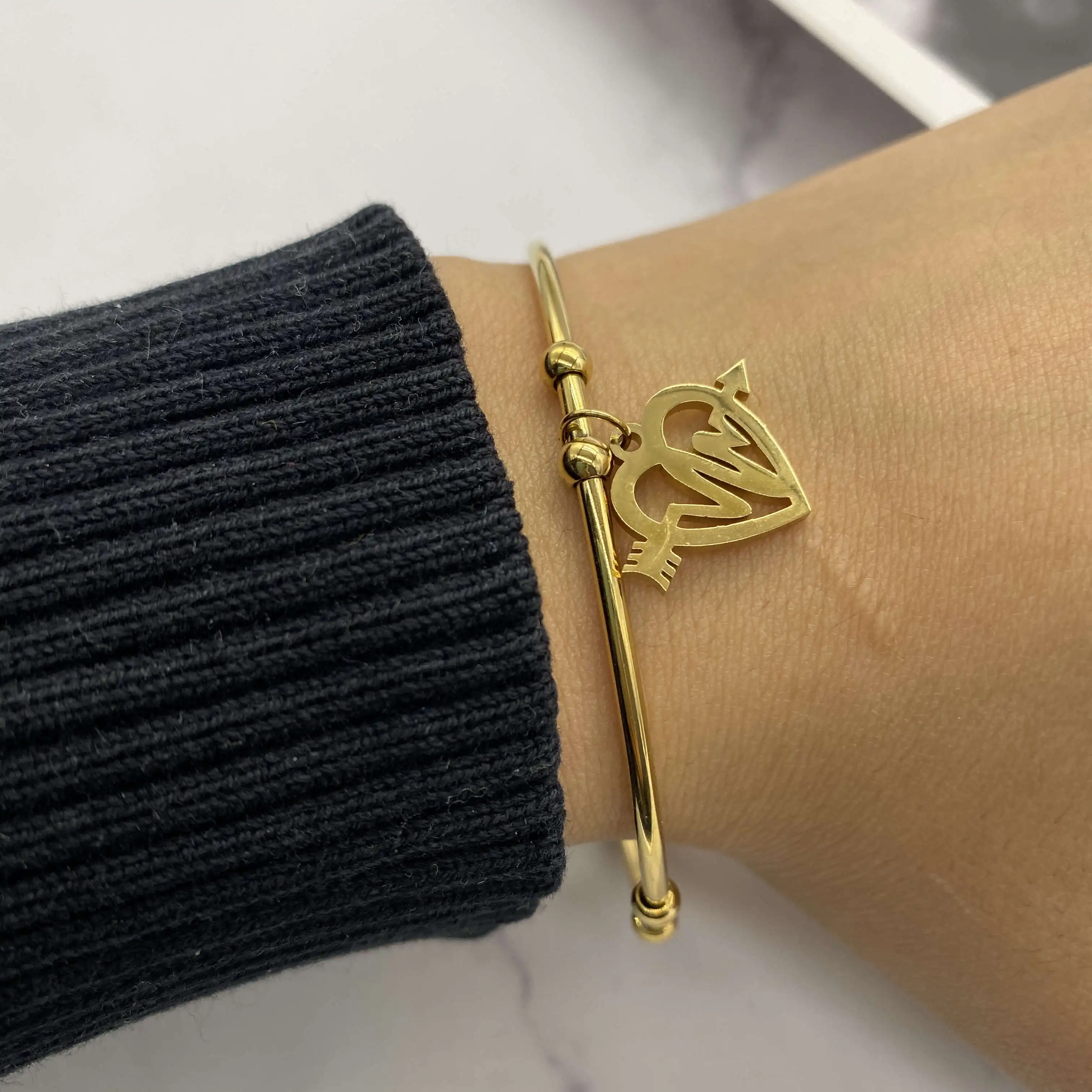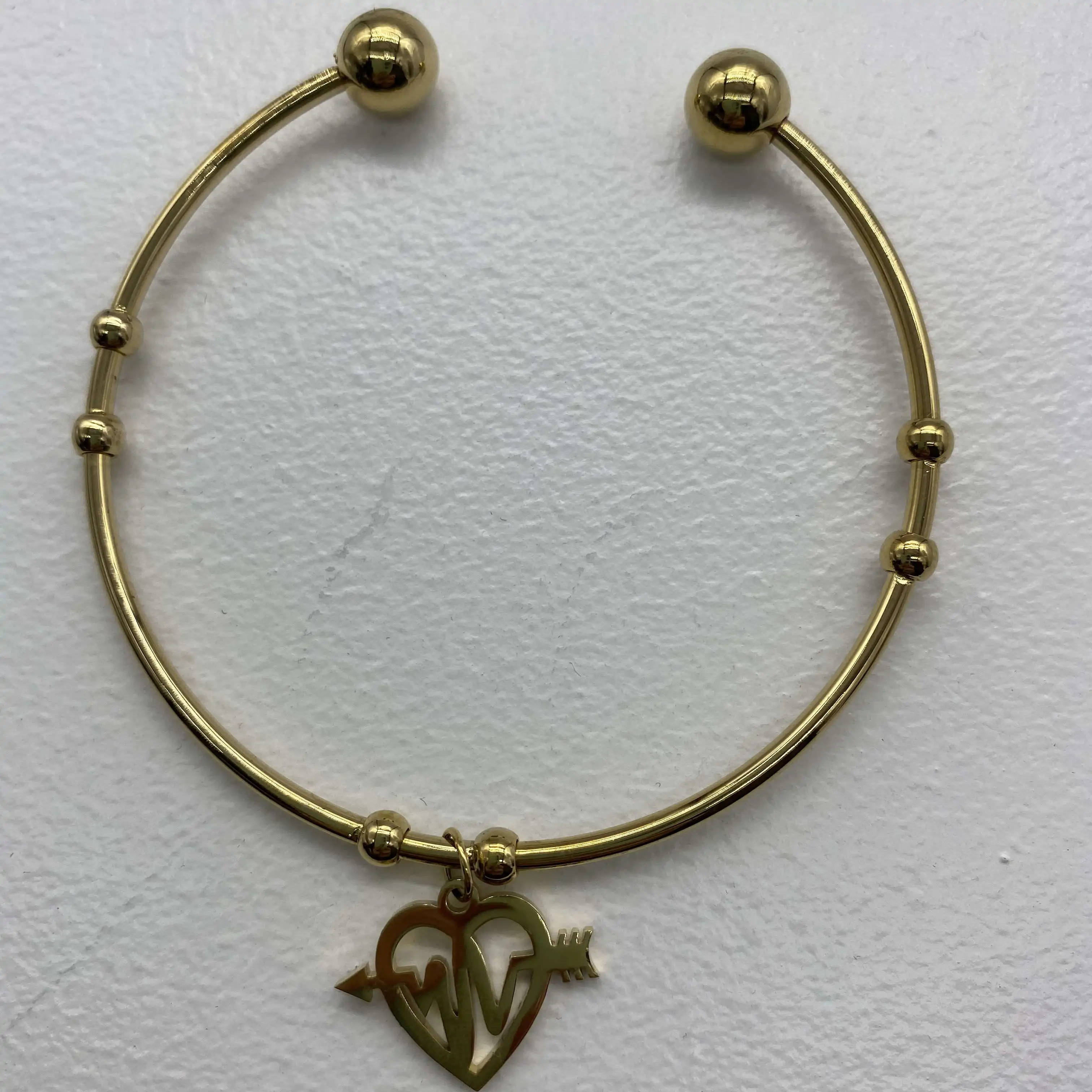 Nurse Bracelet Stainless Steel Heartbeat EKG Heart Cuff Bangle Most Popular Couple Pulse Arrow Heart Charm Cuff Bangle Bracelet