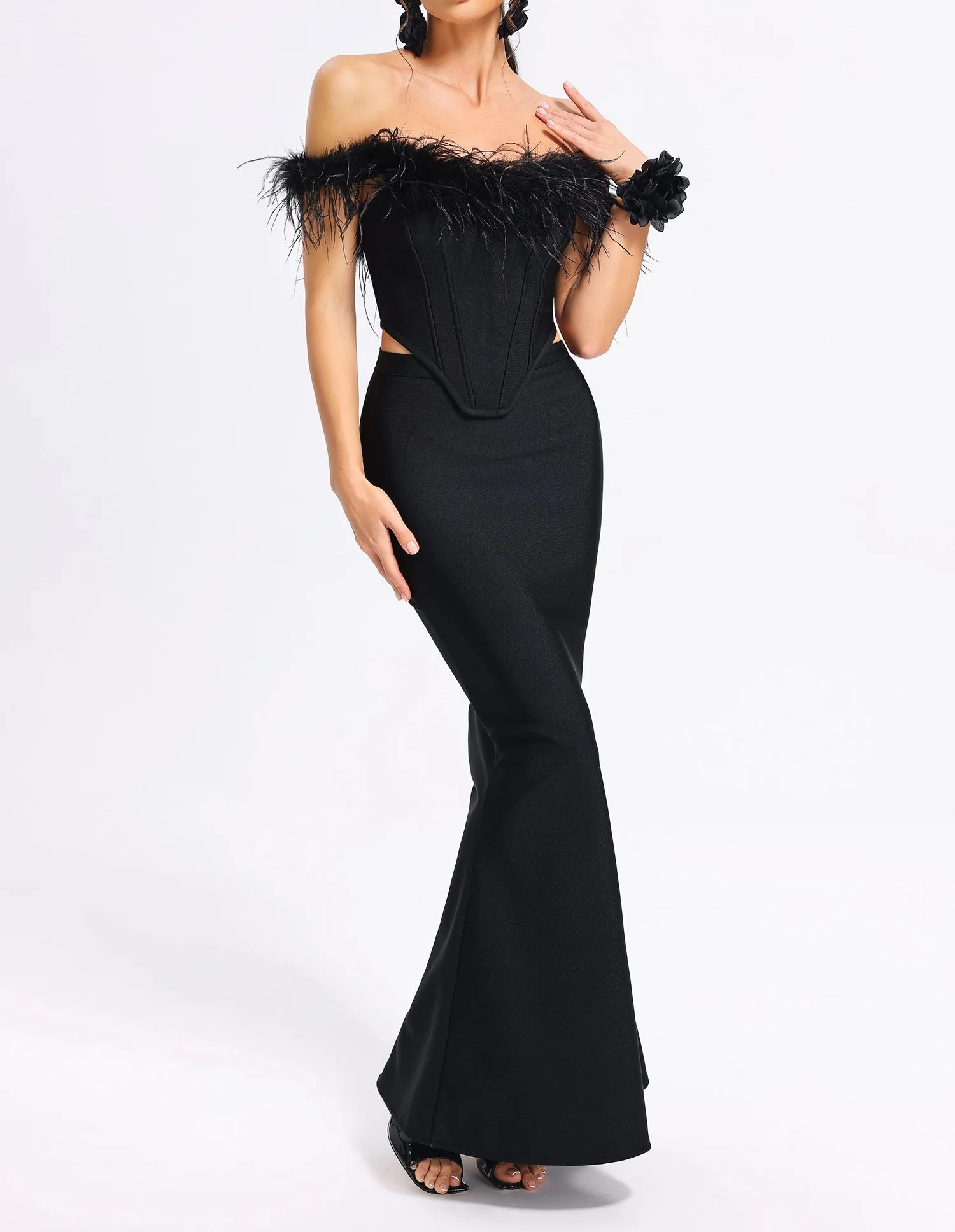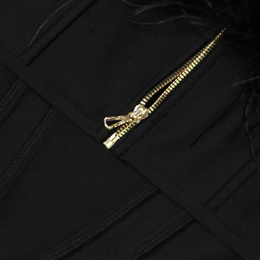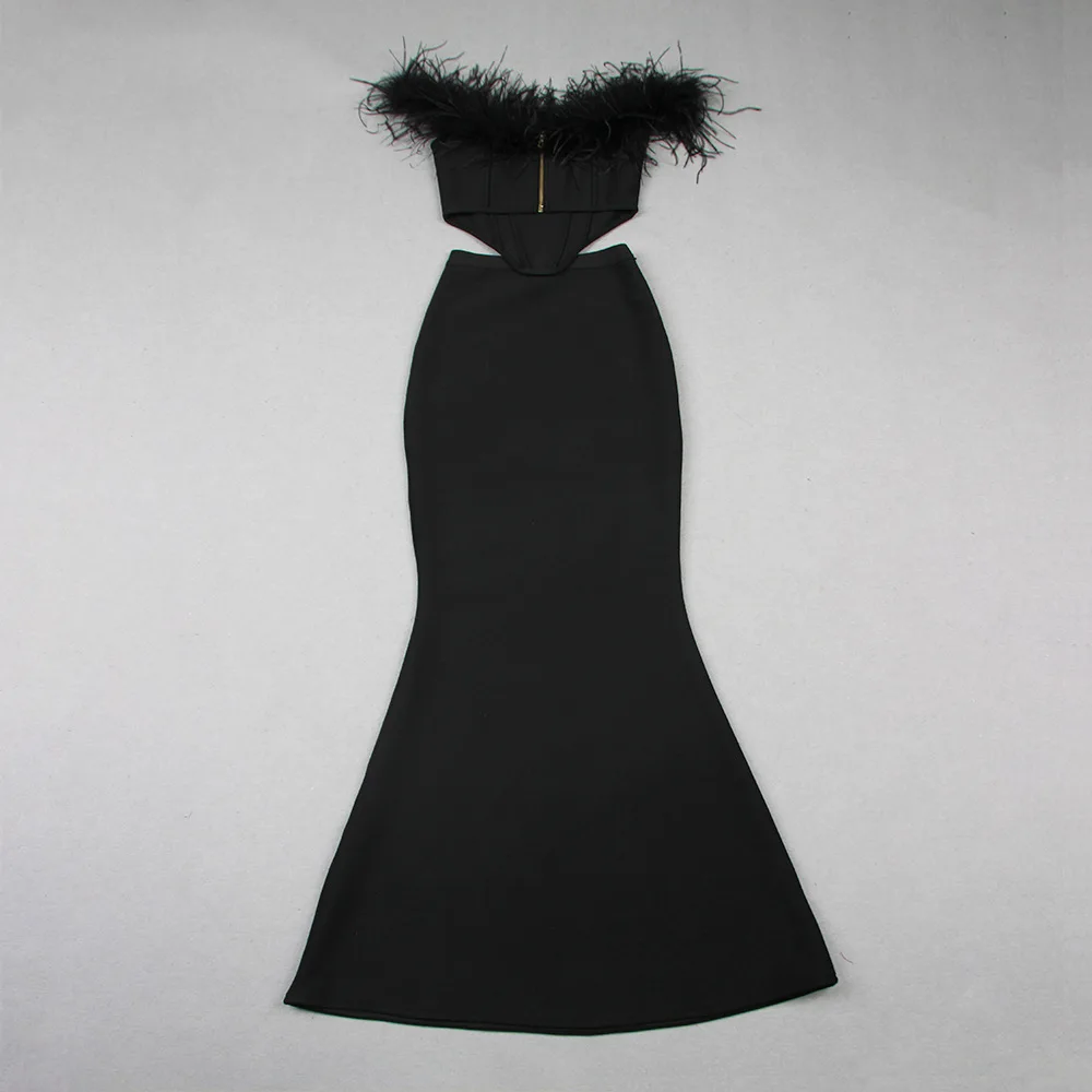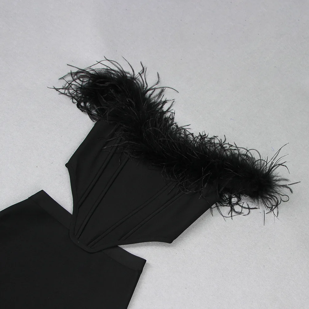Ocstrade Black Feather Off The Order Two Piece Bandage Dress Set Black Bodycon Bandage Midi Skirt And Top Set For Women Vestido