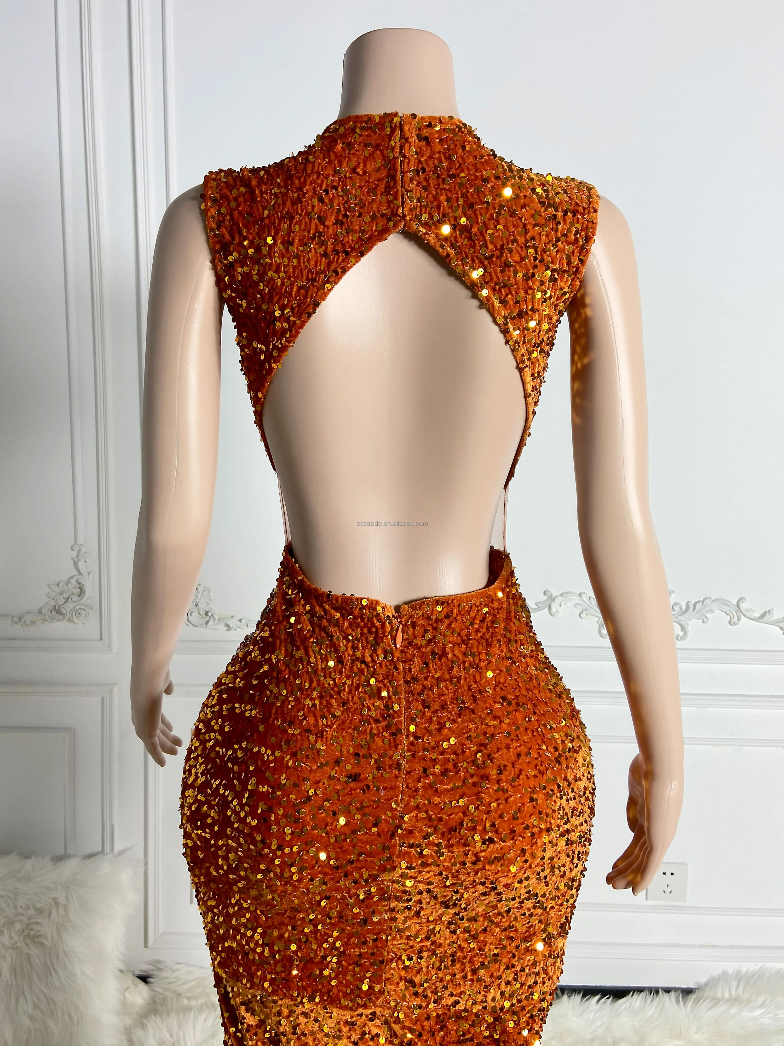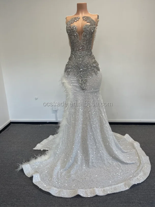 Ocstrade Designer Custom Orange Feather Rhinestone Prom Gowns Evening Dress Party Romantic Women's Sequin Long Prom Dress Sexy