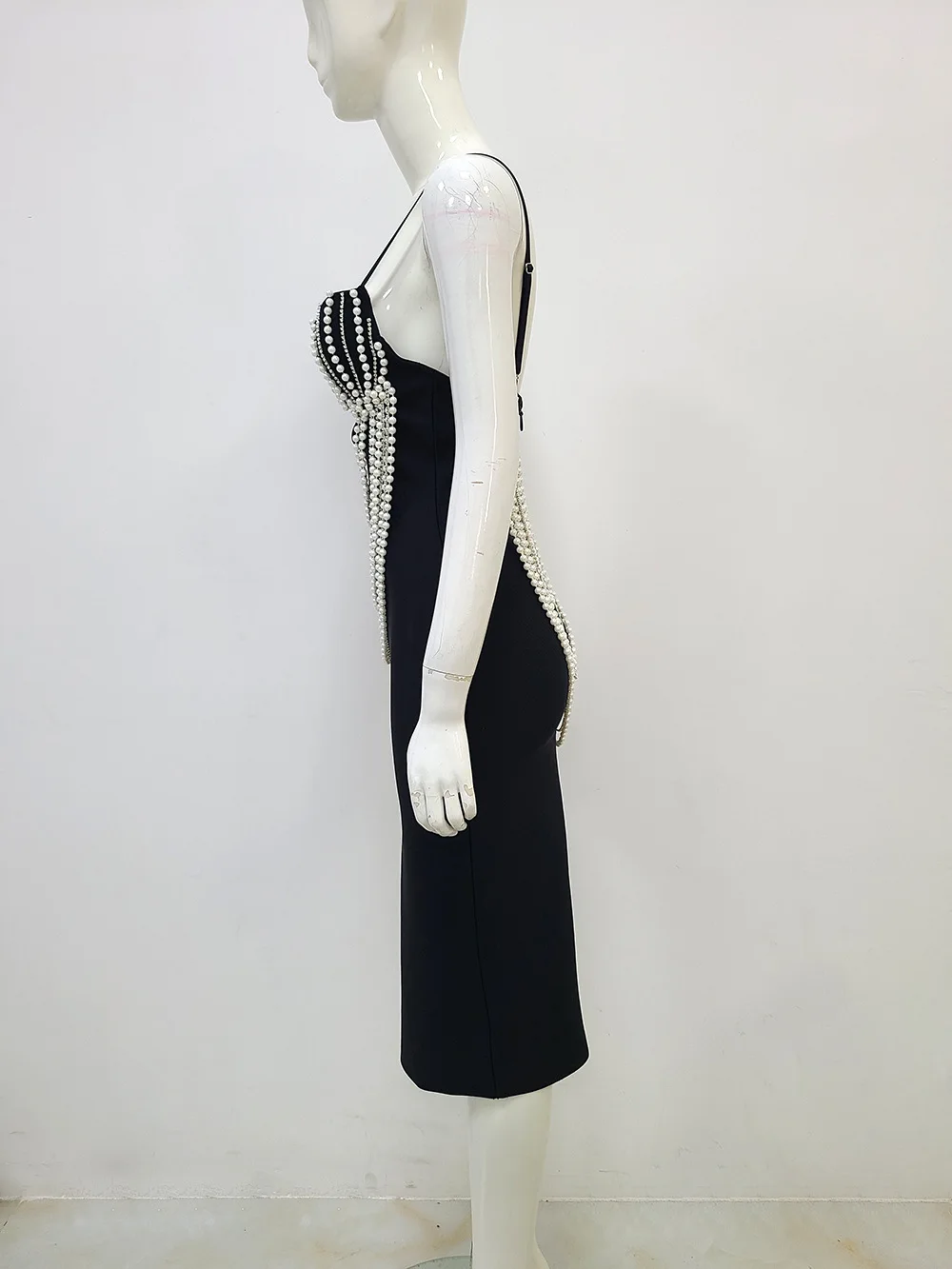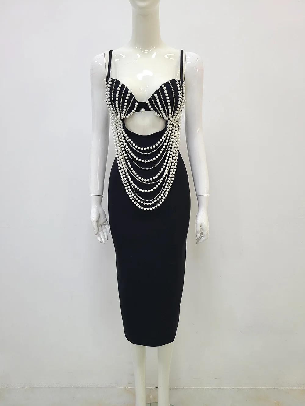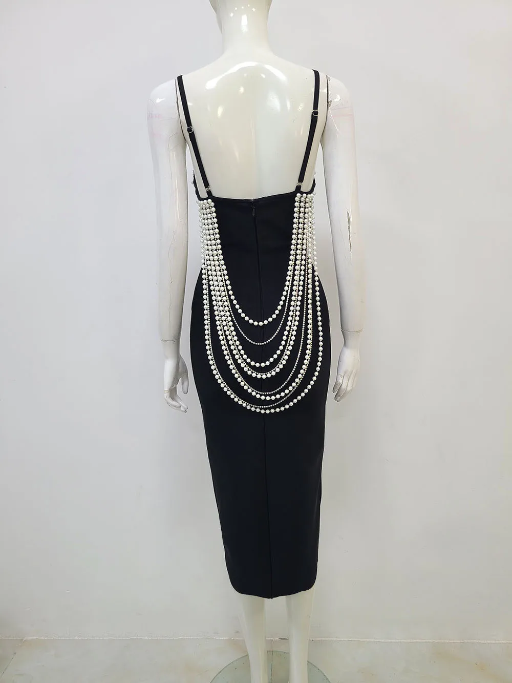 Ocstrade Luxury Elegant Pearl Strap Black Maxi Dress V-Neck Slim Fit Wrap Hips Sexy Bandage Evening Dress Ball Gown