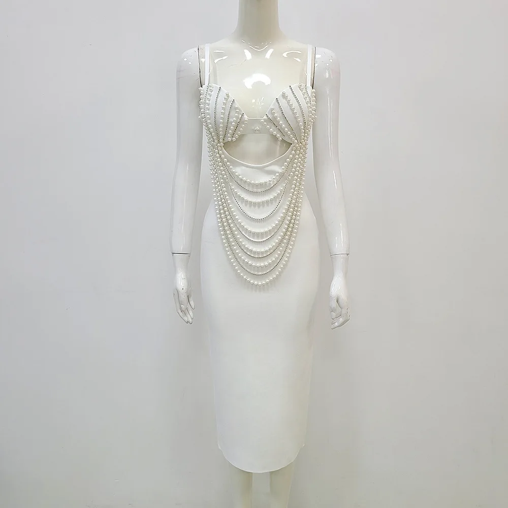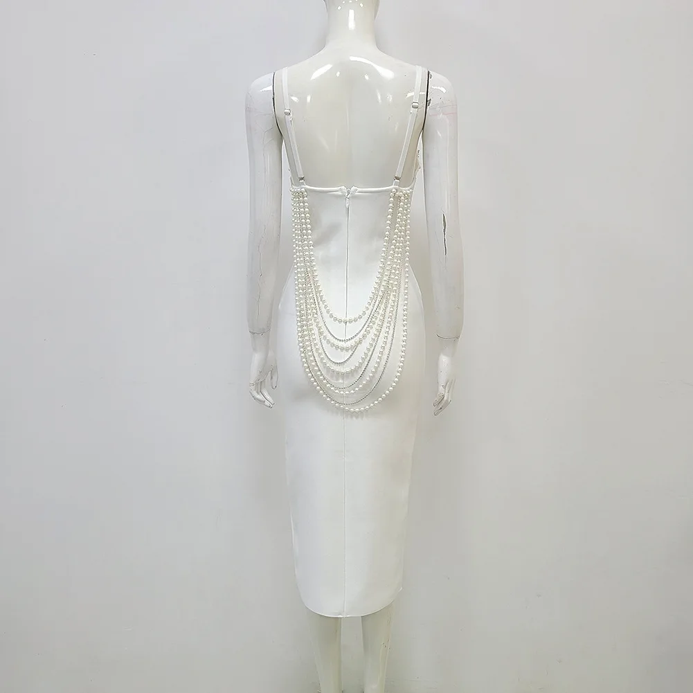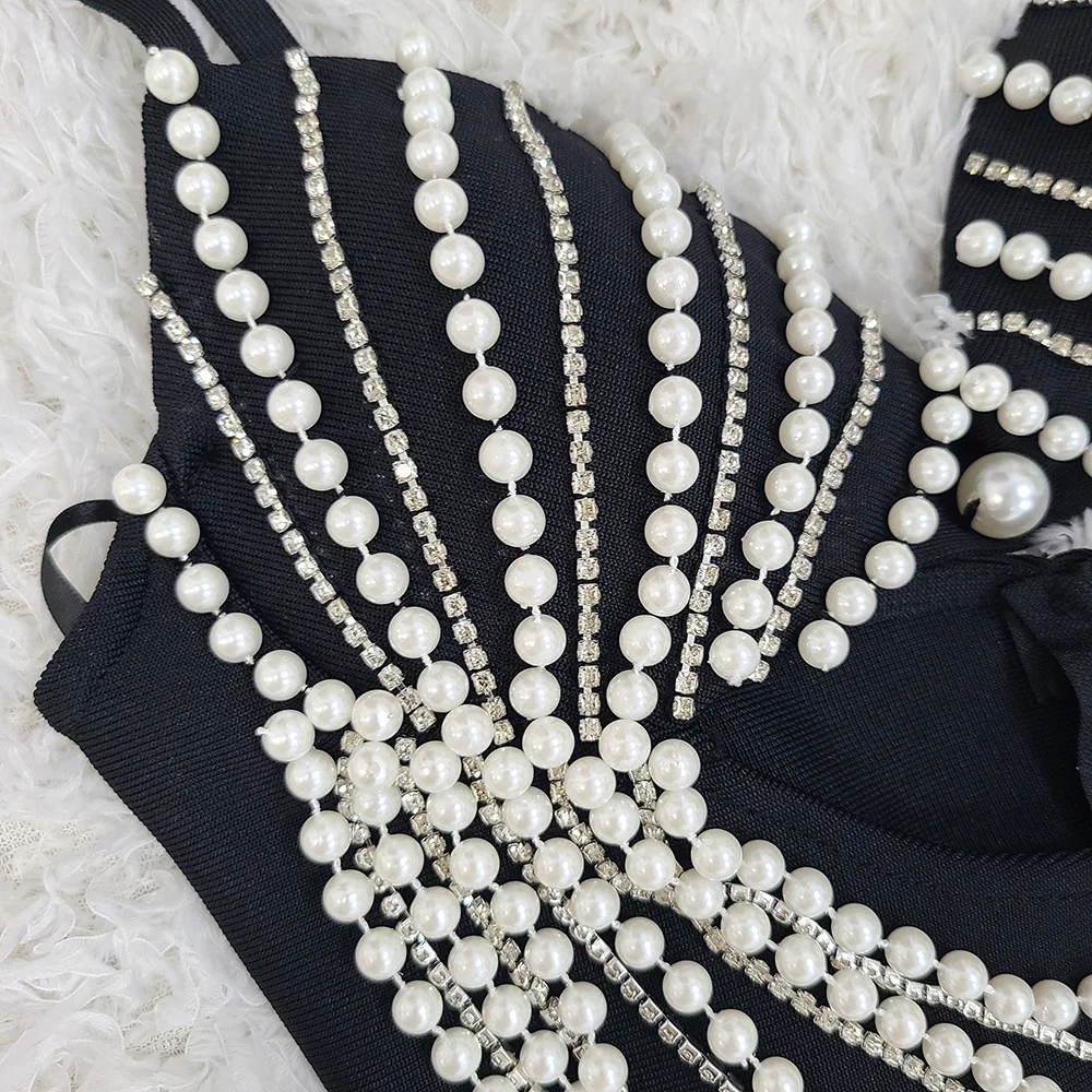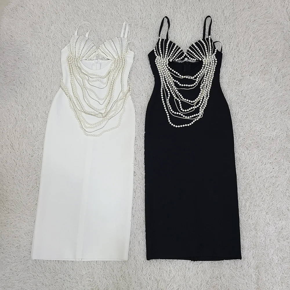 Ocstrade Luxury Elegant Pearl Strap Black Maxi Dress V-Neck Slim Fit Wrap Hips Sexy Bandage Evening Dress Ball Gown