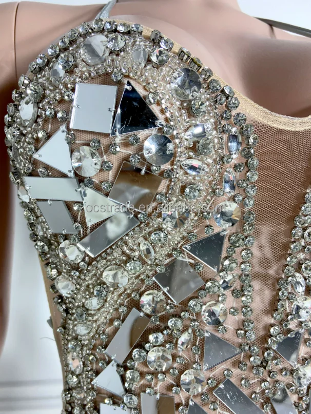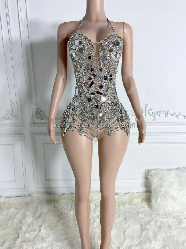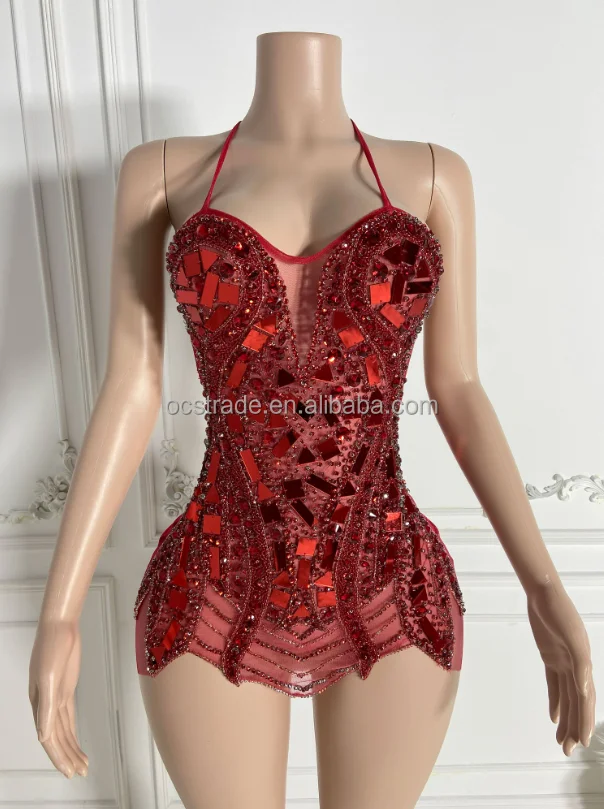 Ocstrade New Style Sparkly Rhinestone Night Club Party Dress Sequined Halter Sexy Open Back Lace Up Bodycon Mini Prom Dress