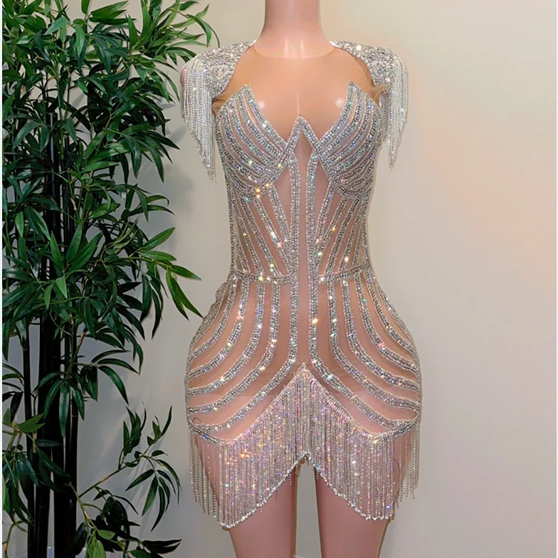 Ocstrade Rhinestones Chain Beaded Dress Slim Private Labels Designer Quality Party Club Dress Night Dresses For Woman Sexy Short