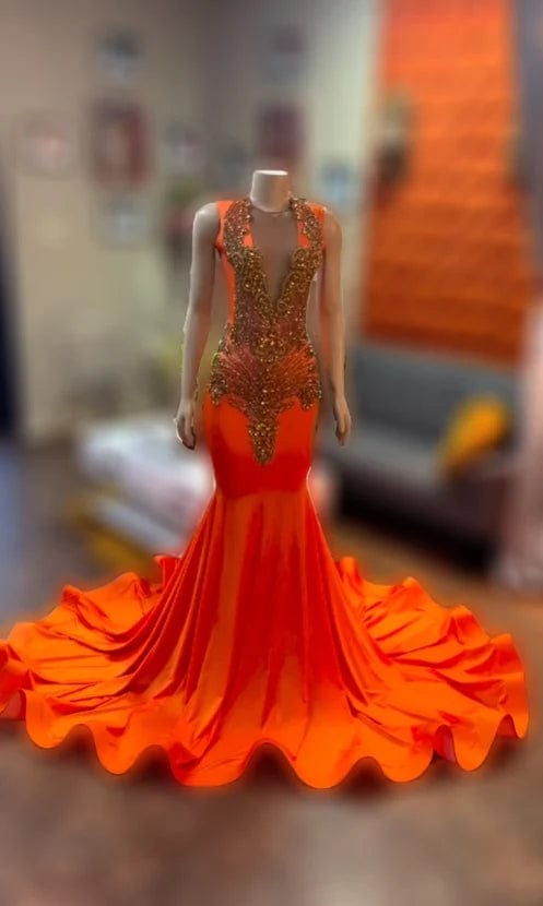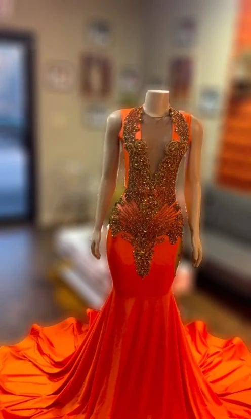 Ocstrade XL Plus Size Women's Evening Prom Dresses 2024 Women Elegant Custom Gold Rhinestone Orange Maxi Prom Dress Romantic